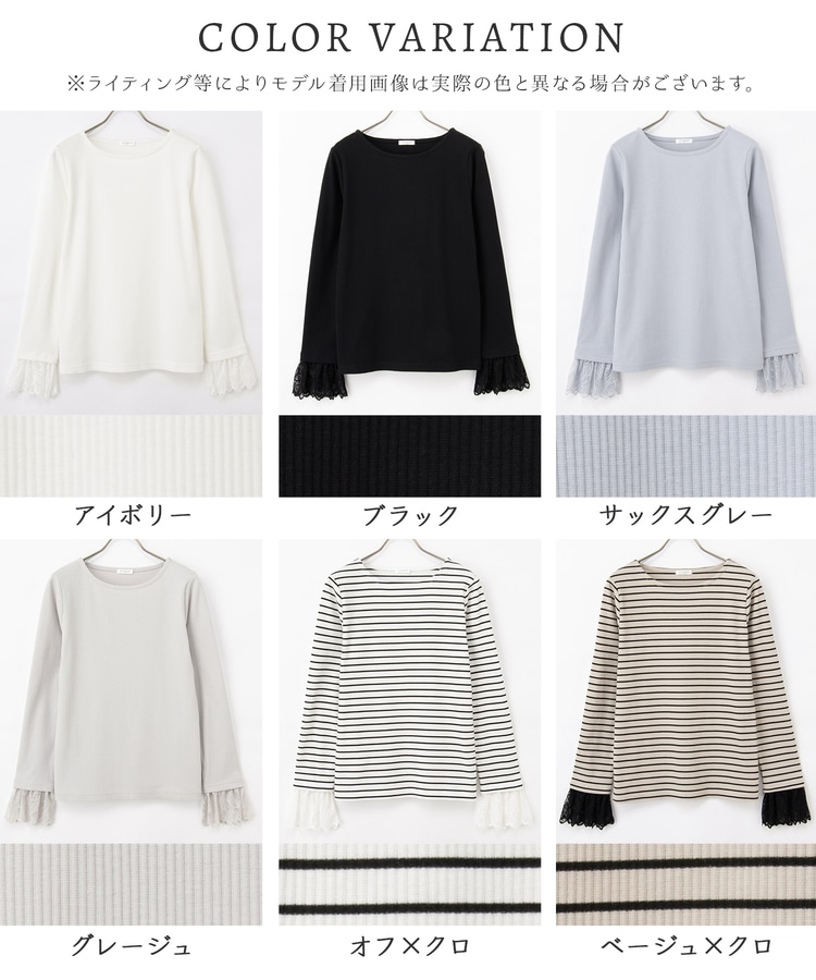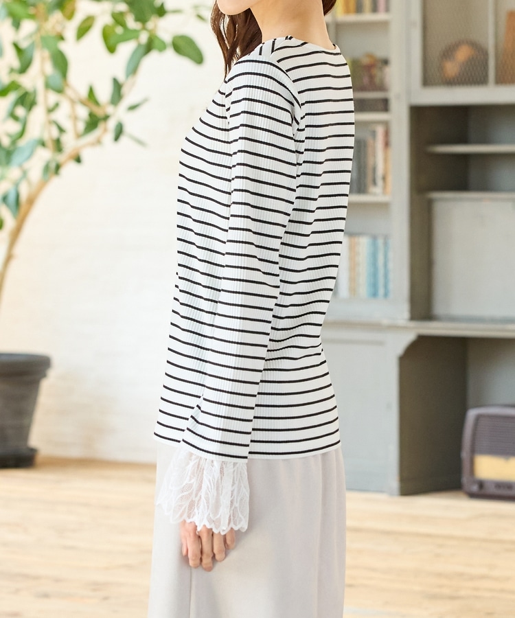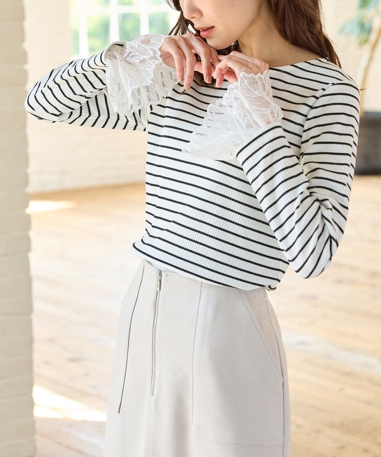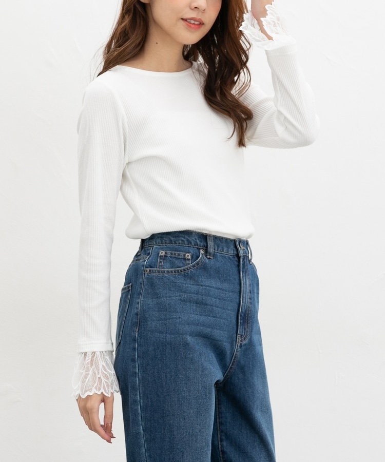 1枚ではもちろん、スウェットやニットカーデの袖口からレースをのぞかせるレイヤードスタイルがおすすめ。