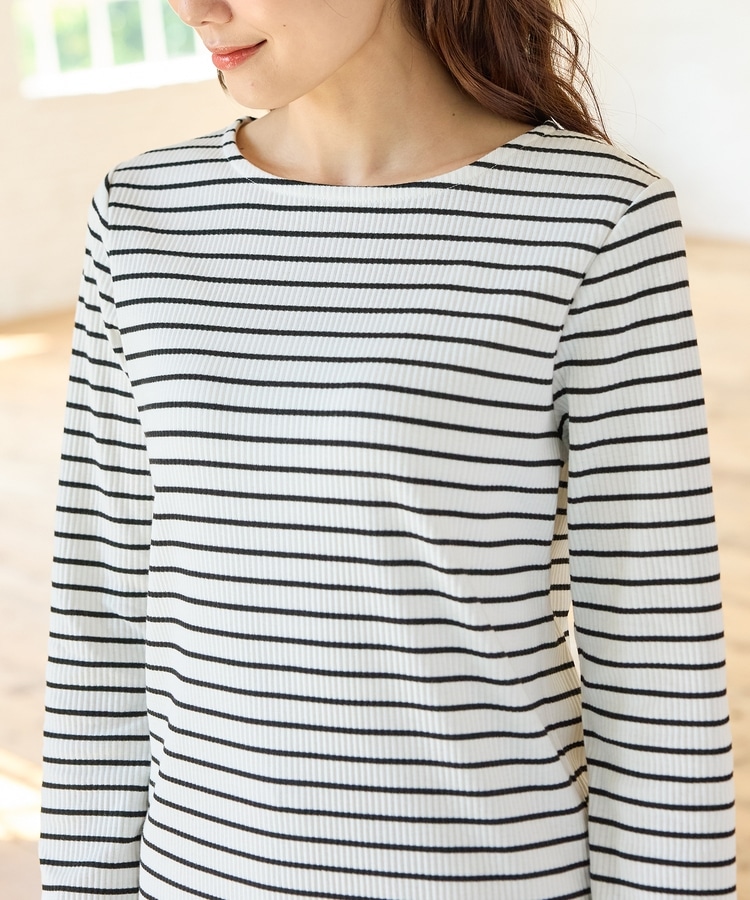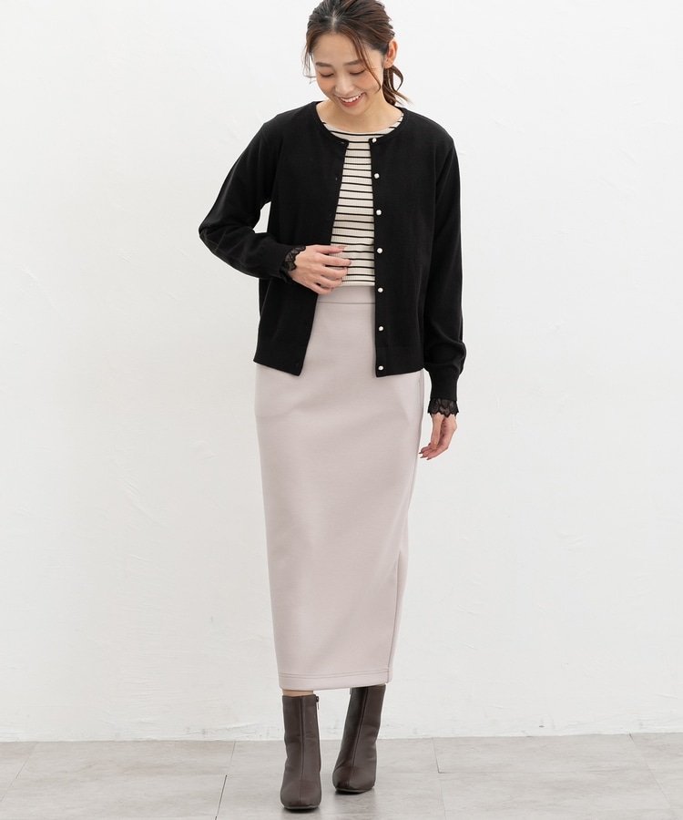 すっきりとしたシルエットと縦目のラインで細見え効果も◎