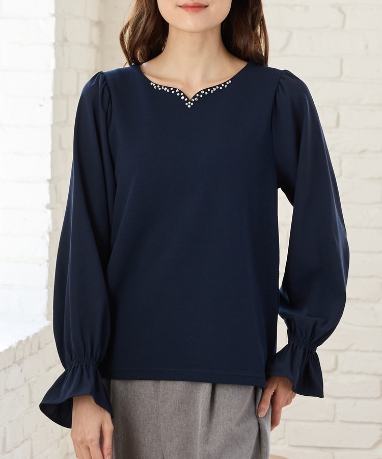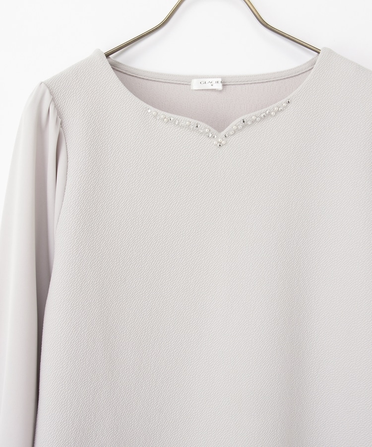 袖は軽やかで清涼感のあるジョーゼット素材。
