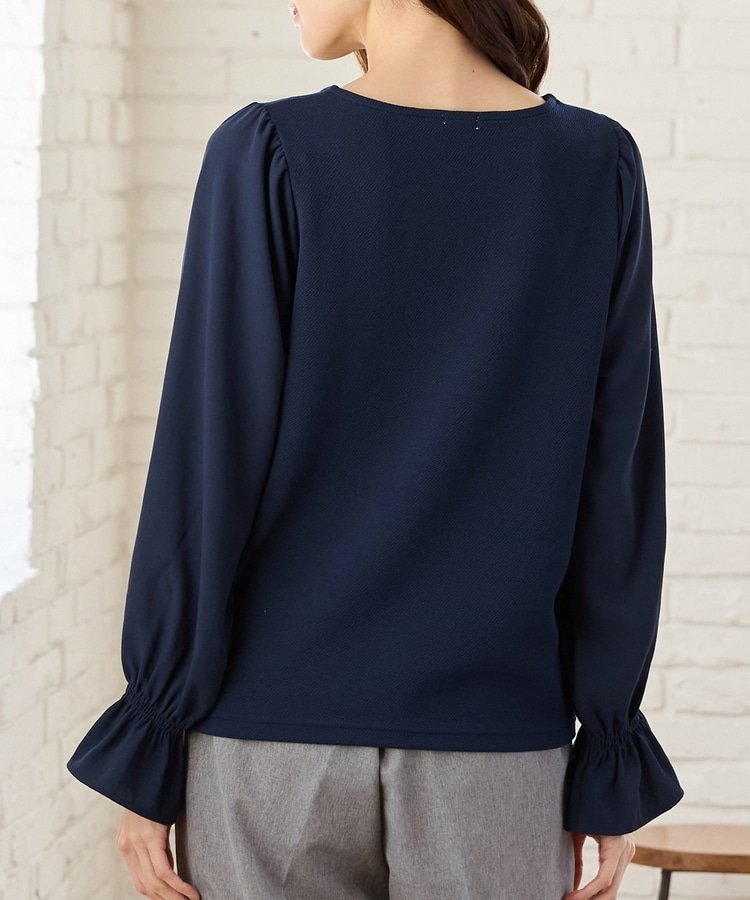 袖口のゴムシャーリングで、たくし上げてパフっとさせたりとアレンジ可能。
