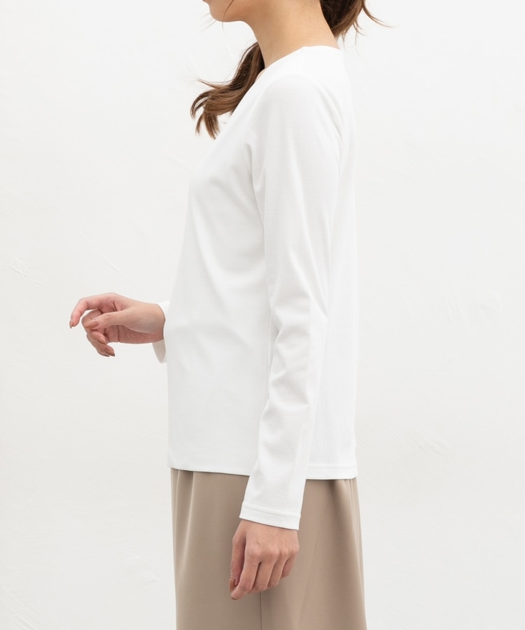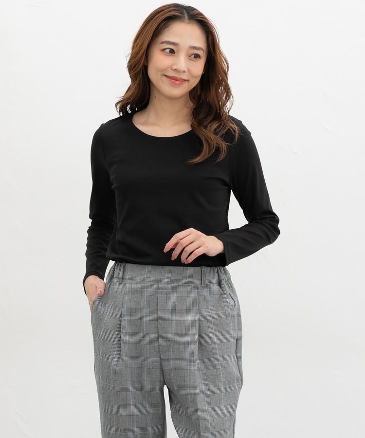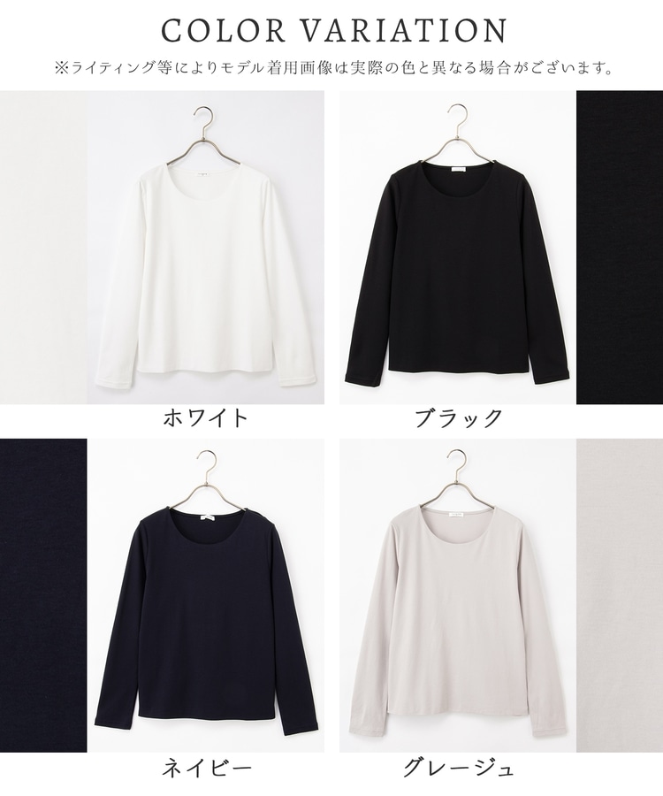 1枚でも、ジャケットやカーディガンのインにも使え、お仕事やお出かけなどのきれいめスタイルに、ロングシーズン活躍。