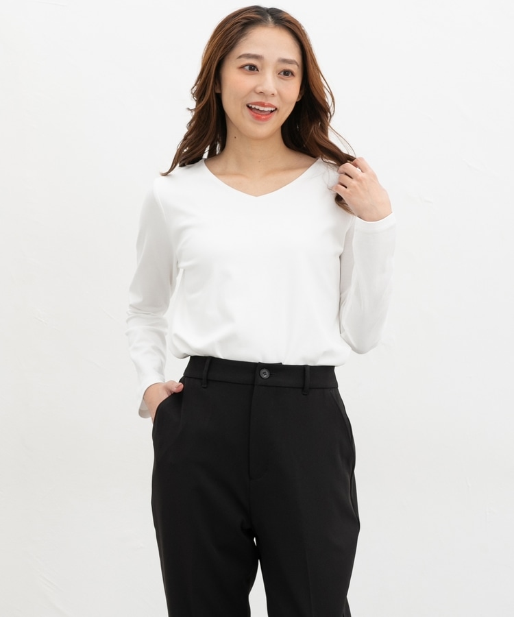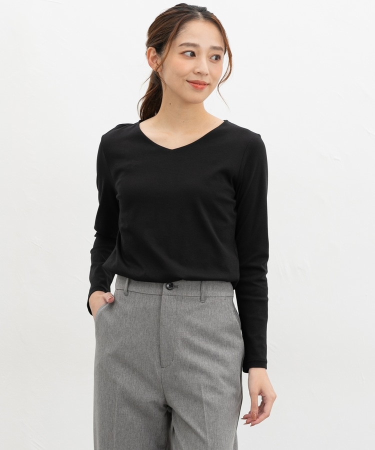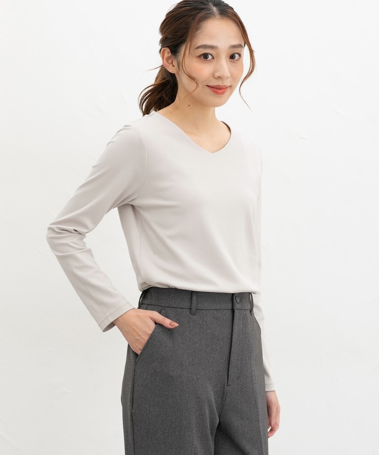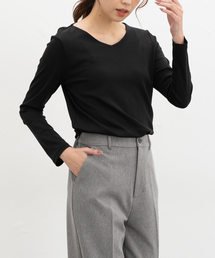 1枚でも、ジャケットやカーディガンのインにも使え、お仕事やお出かけなどのきれいめスタイルに、ロングシーズン活躍。