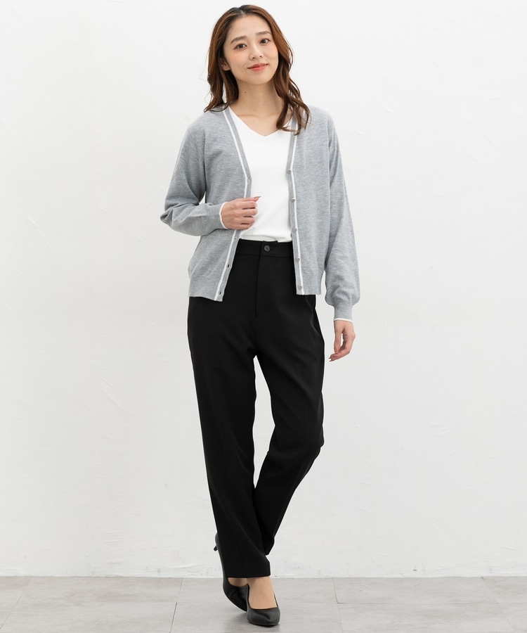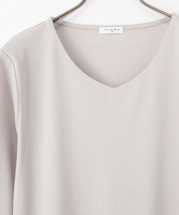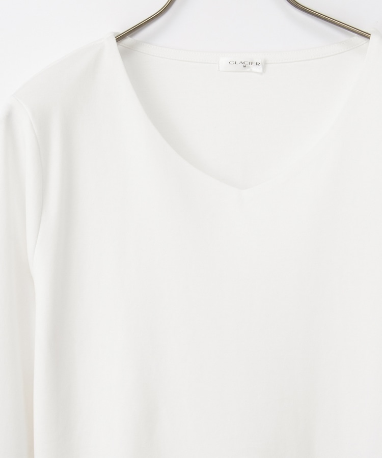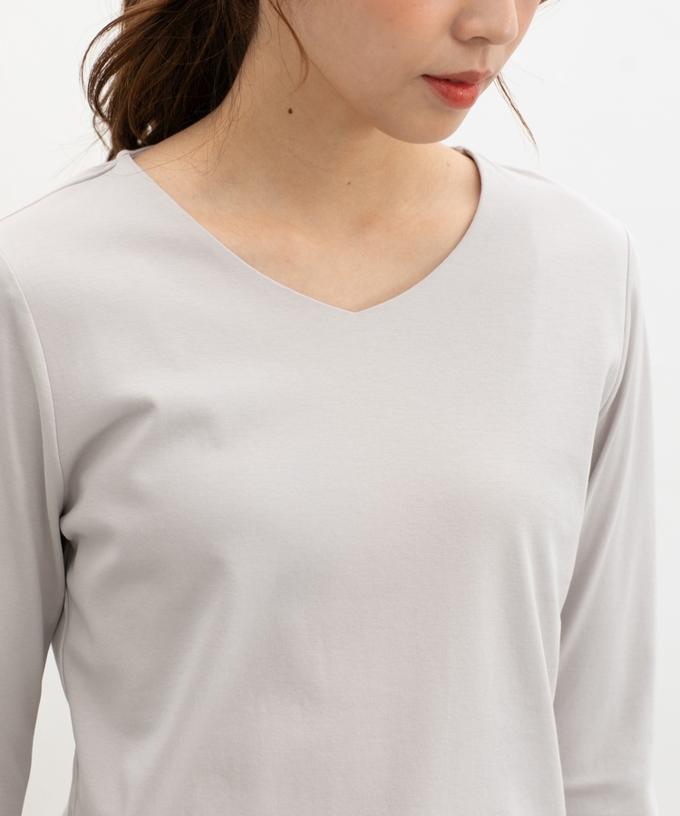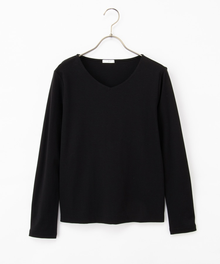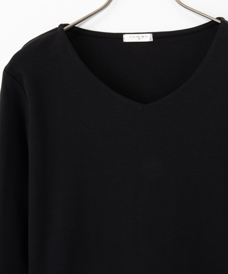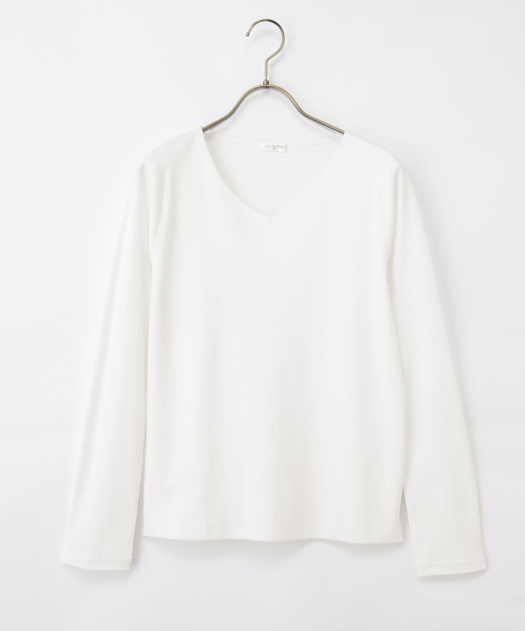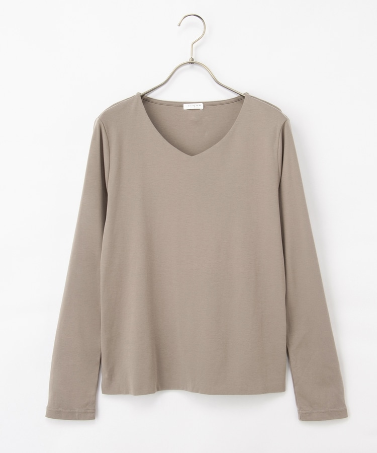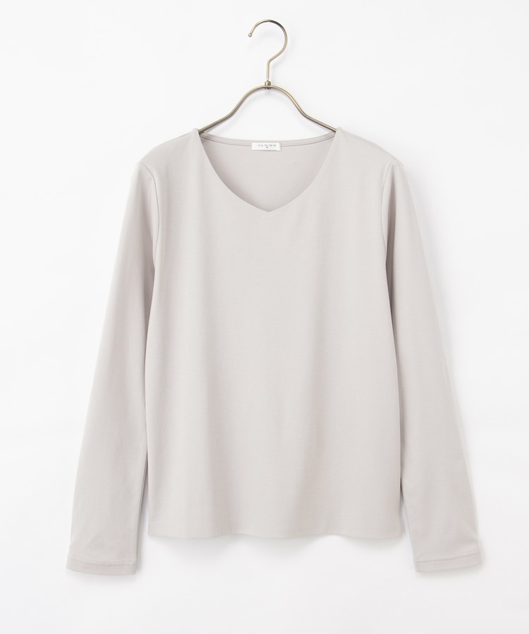 ステッチをなくした首元すっきりのVネックで、高見えが叶う上品デザイン。