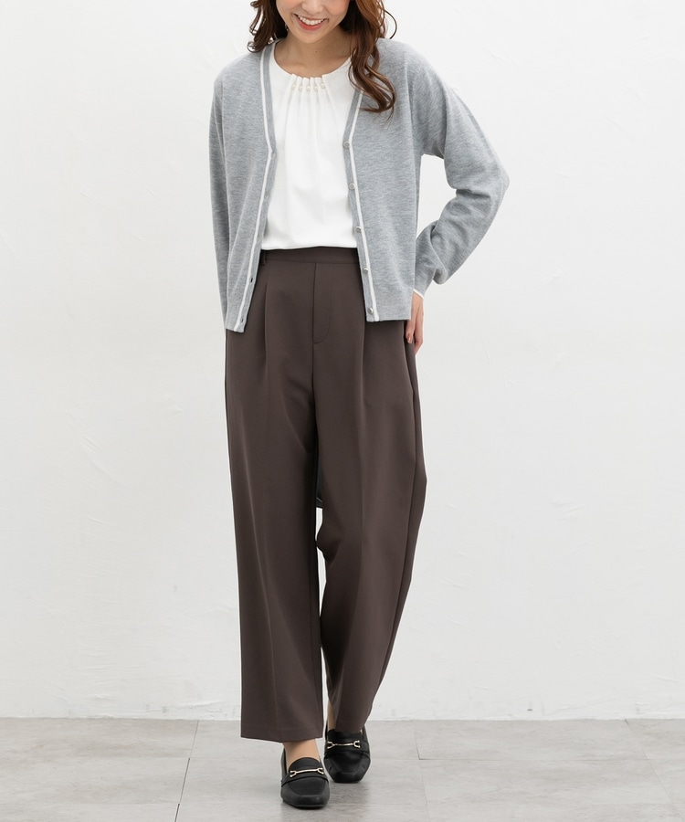気になるボディーラインが響きにくい、ゆったりめの幅と腰にかかる丈感。