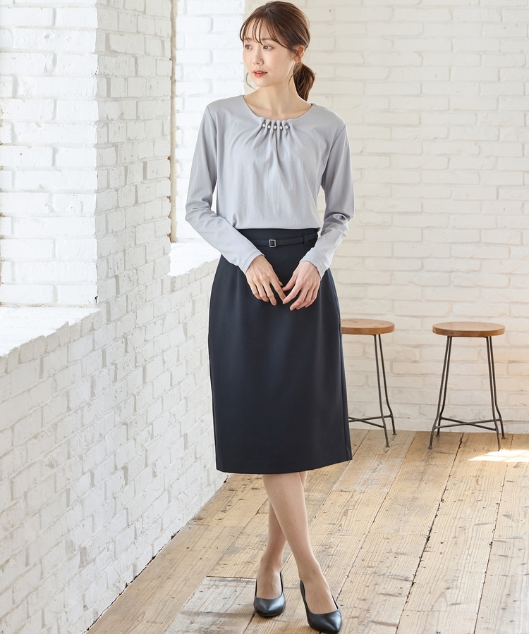 1枚でも、ジャケットやカーディガンのインにも使え、お仕事やお出かけなどのきれいめスタイルに、ロングシーズン活躍。