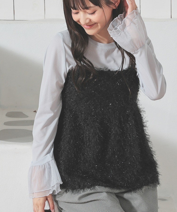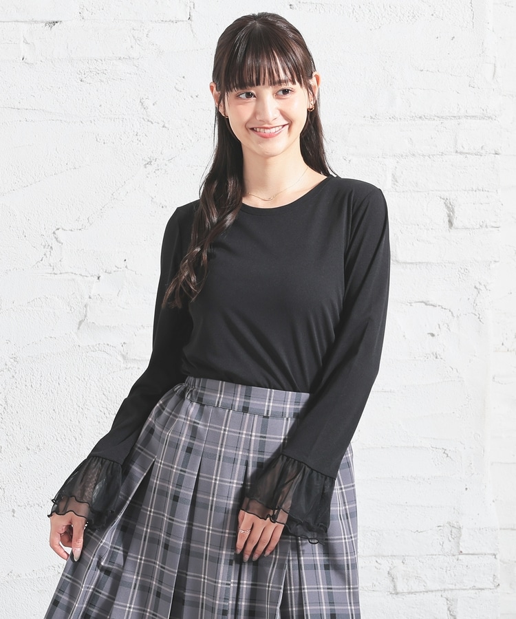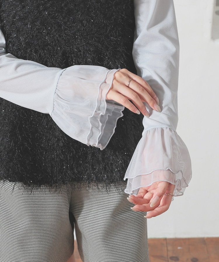 袖口チュール使いトップス