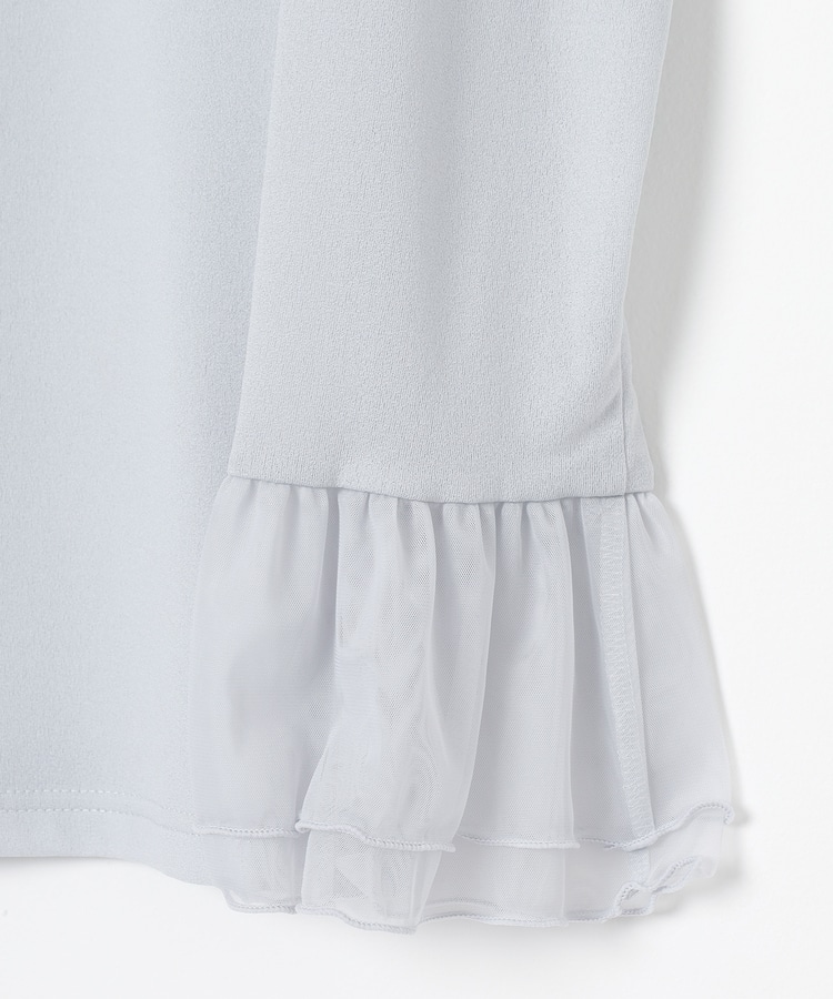 透け感のあるチュールを2枚重ねた袖口フリルがフェミニンなデザイン。