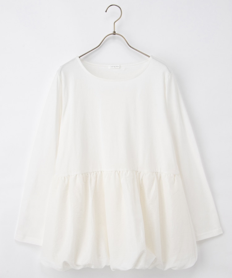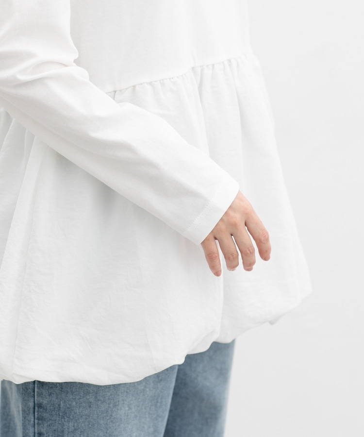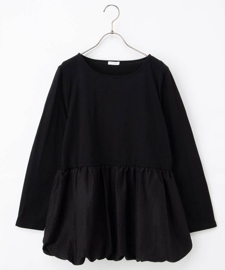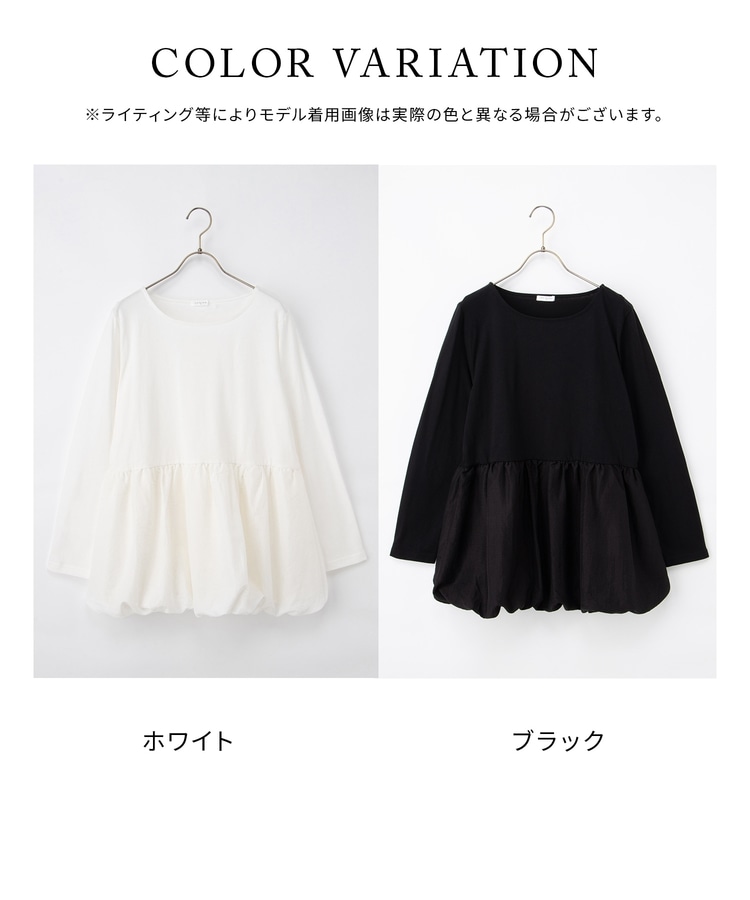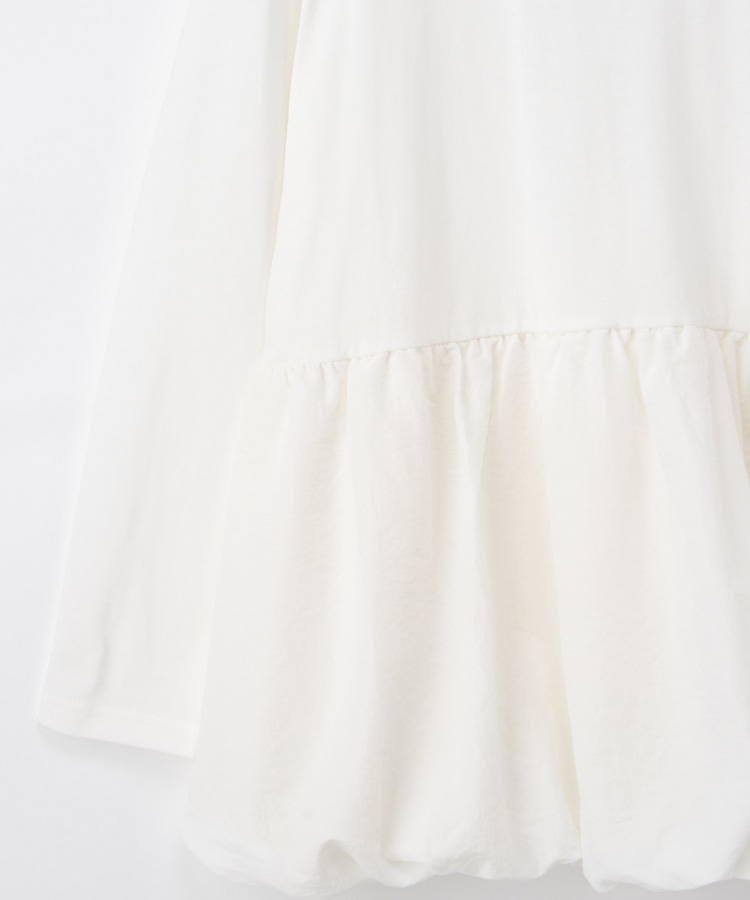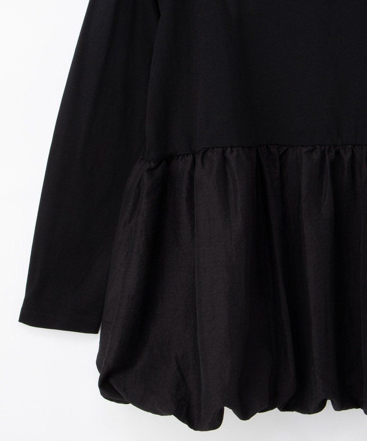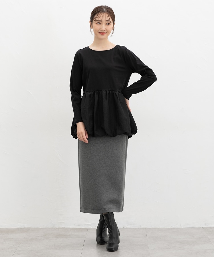 ウエストで切り替えた、裾バルーンのふんわりシルエットがフェミニンな印象に。