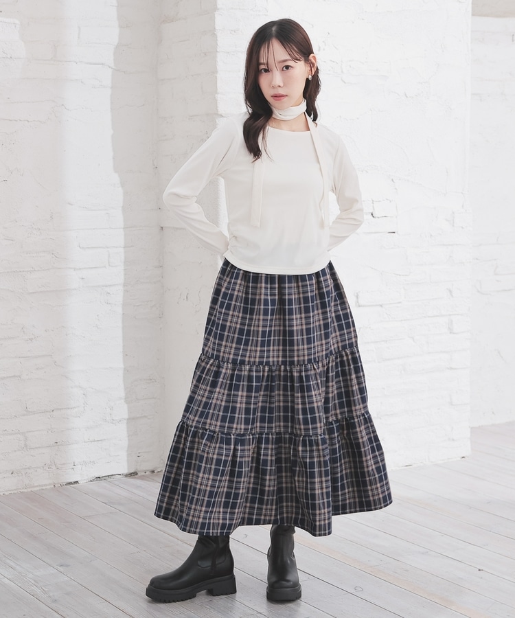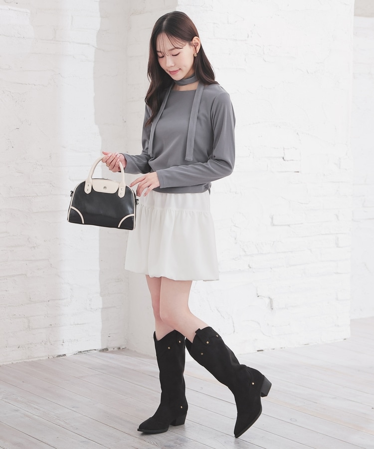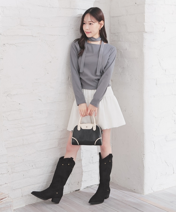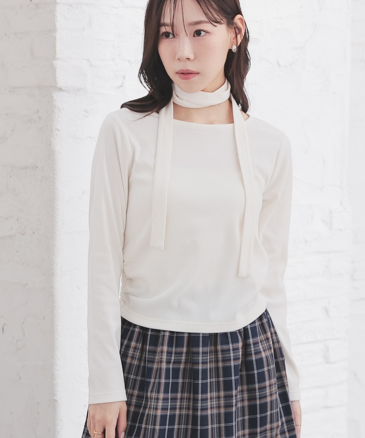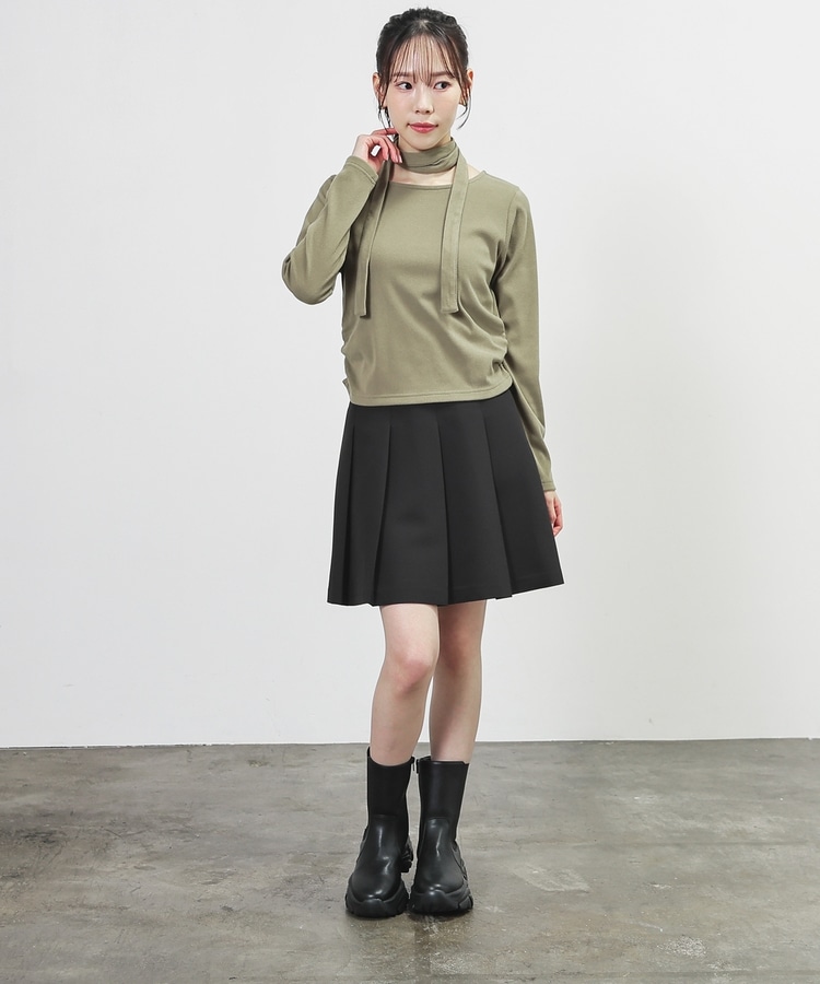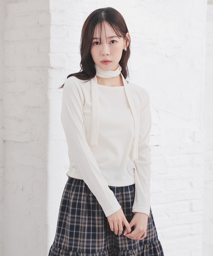 チョーカーなしでも、チョーカーをほかのトップスに合わせても使え、ミニスカート合わせの韓国アイドル風や、ロングパンツ合わせのスタイリッシュな着こなしなど、幅広く活躍。