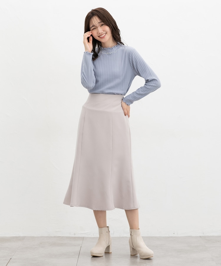 ジャケットにも合うサイズ感で、フレアスカートやテーパードパンツなどと合わせたきれいめスタイルに大活躍。