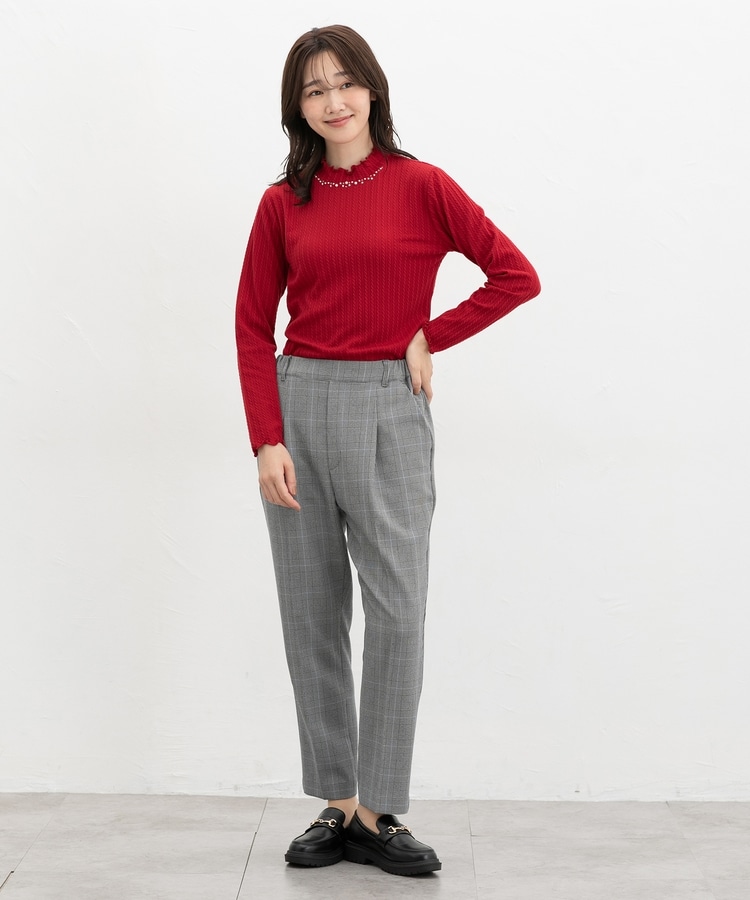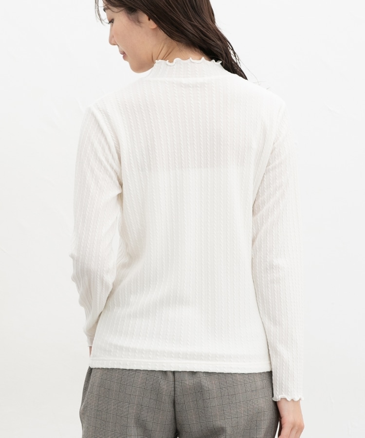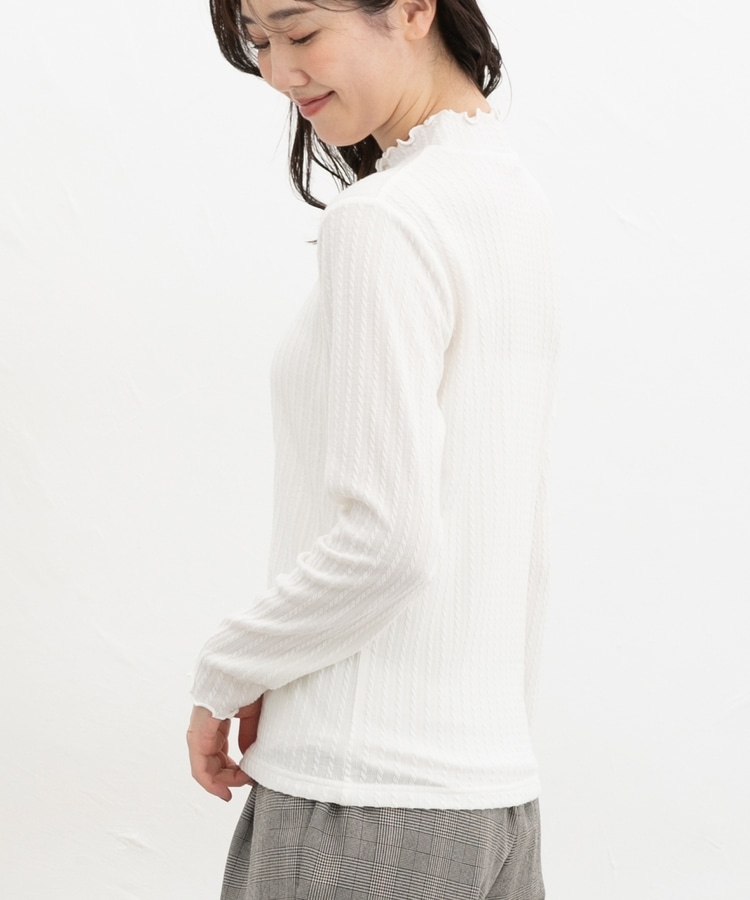 主張しすぎない細かめのケーブル柄で上品な印象に。