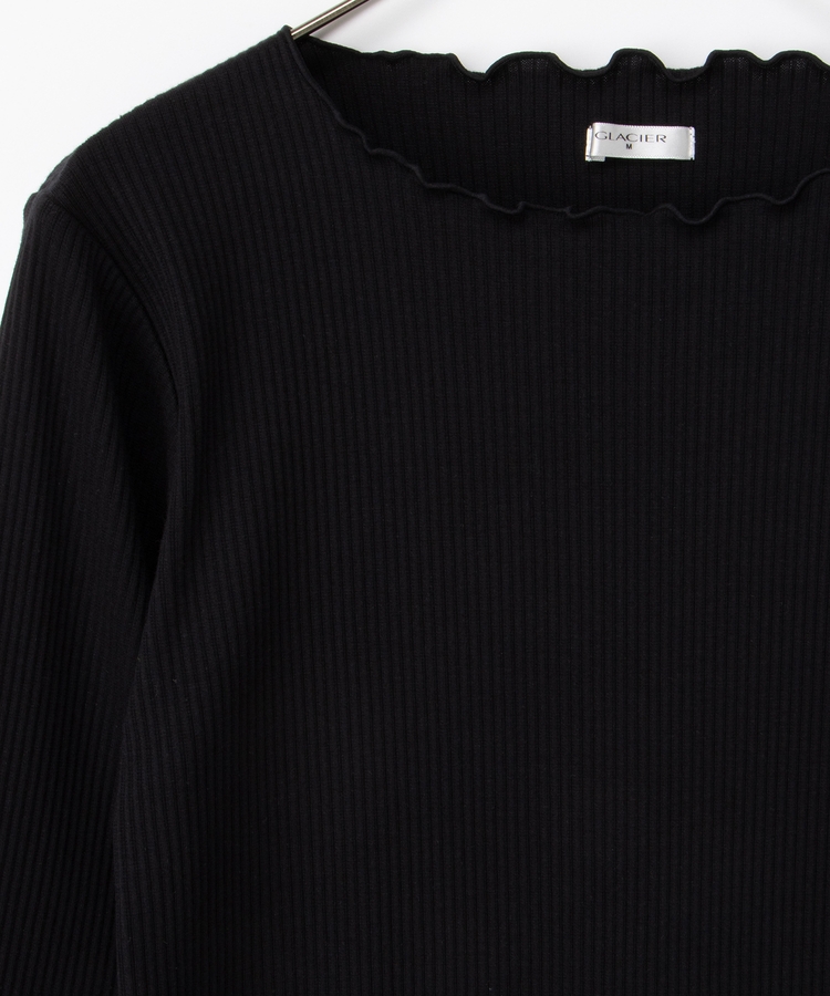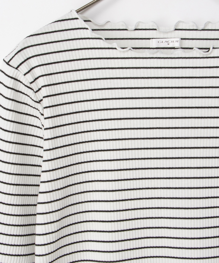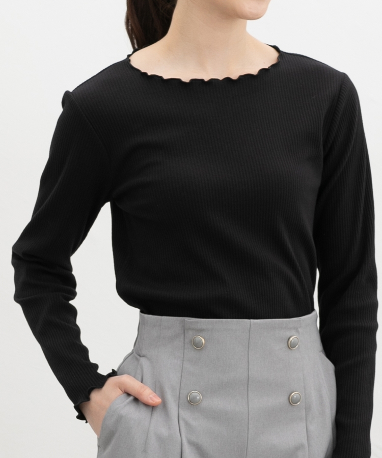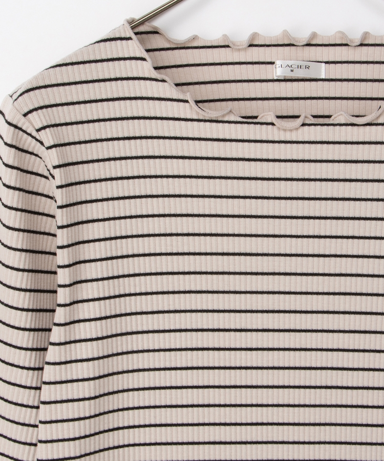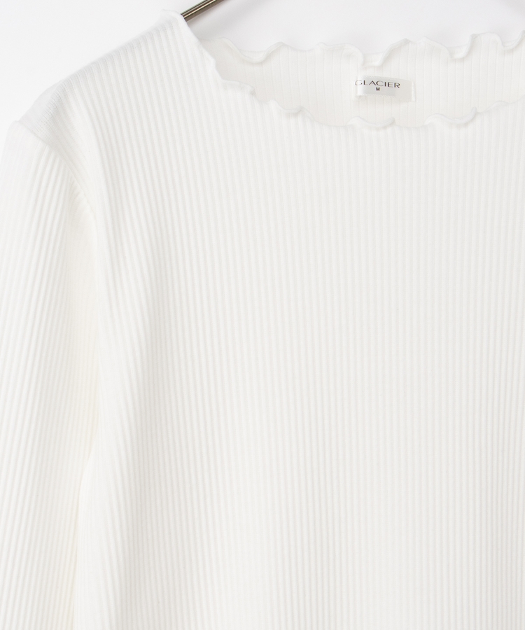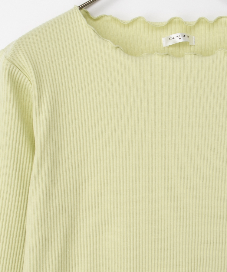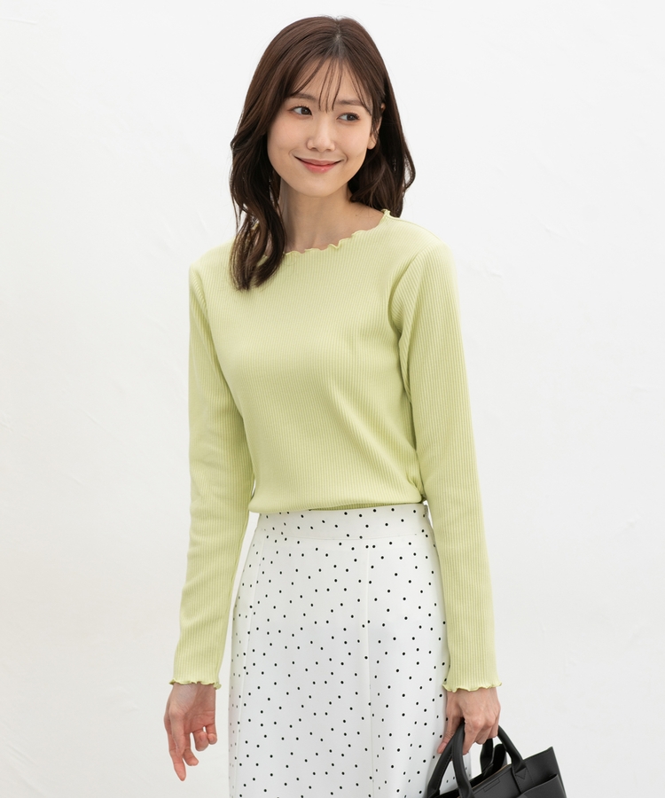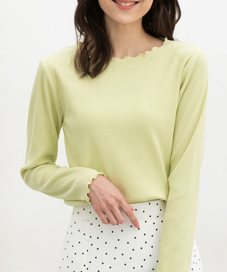 シンプルながら衿元や裾・袖口のメロー使いがさりげなく大人可愛いデザイン。
