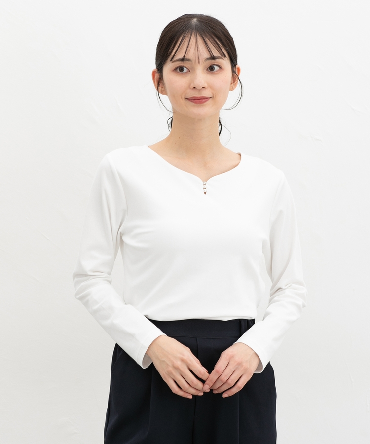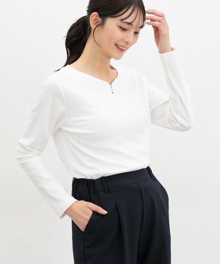 1枚でも、ジャケットやカーディガンのインにも使え、お仕事やお出かけなどのきれいめスタイルにロングシーズン活躍。