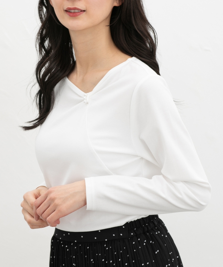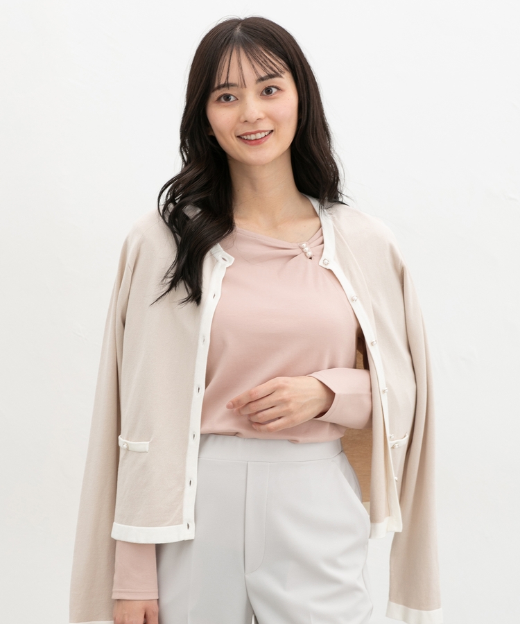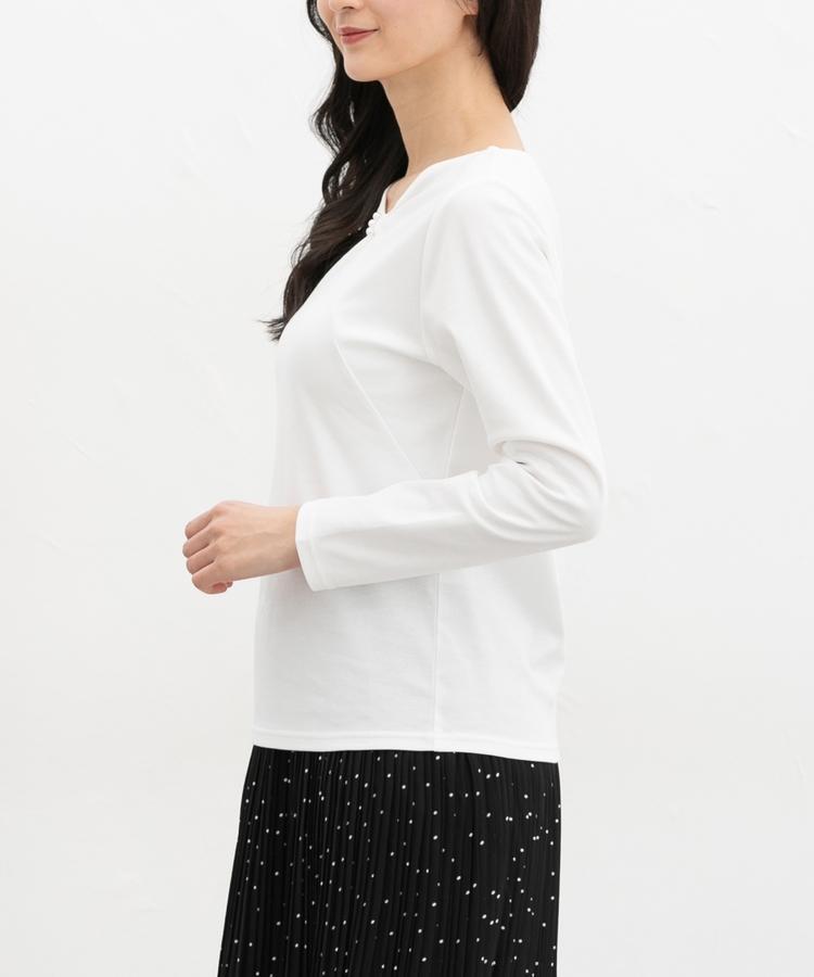 1枚でも、ジャケットやカーディガンのインにも使え、お仕事やお出かけなどのきれいめスタイルにロングシーズン活躍。