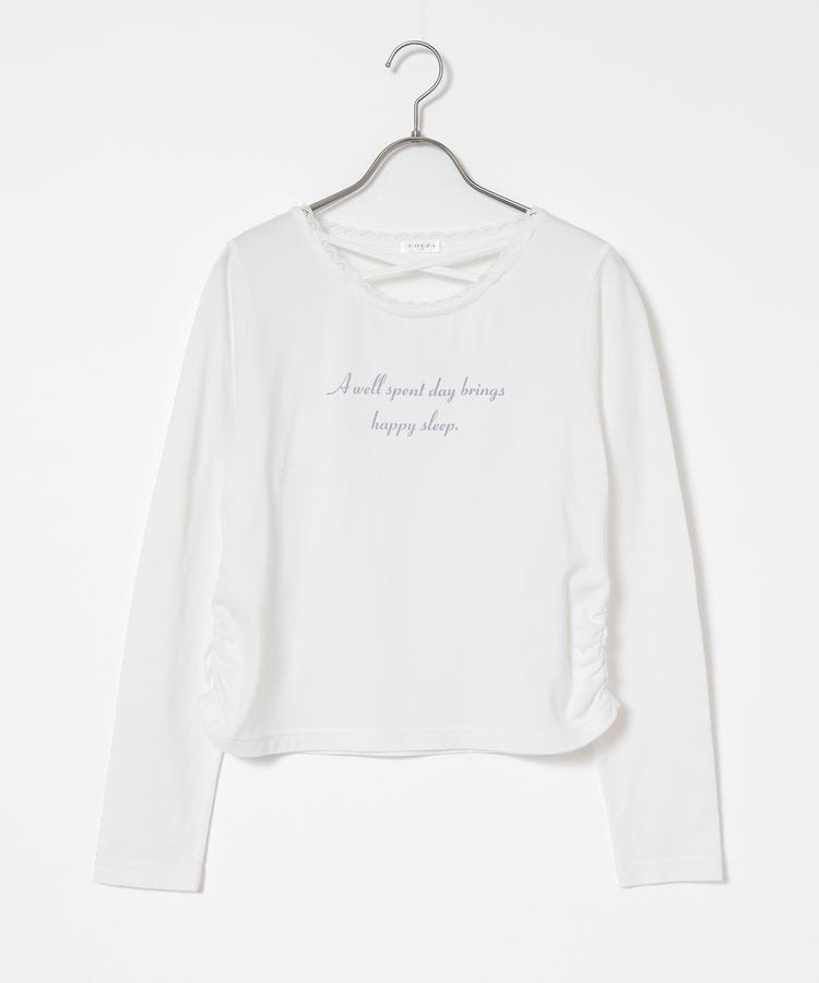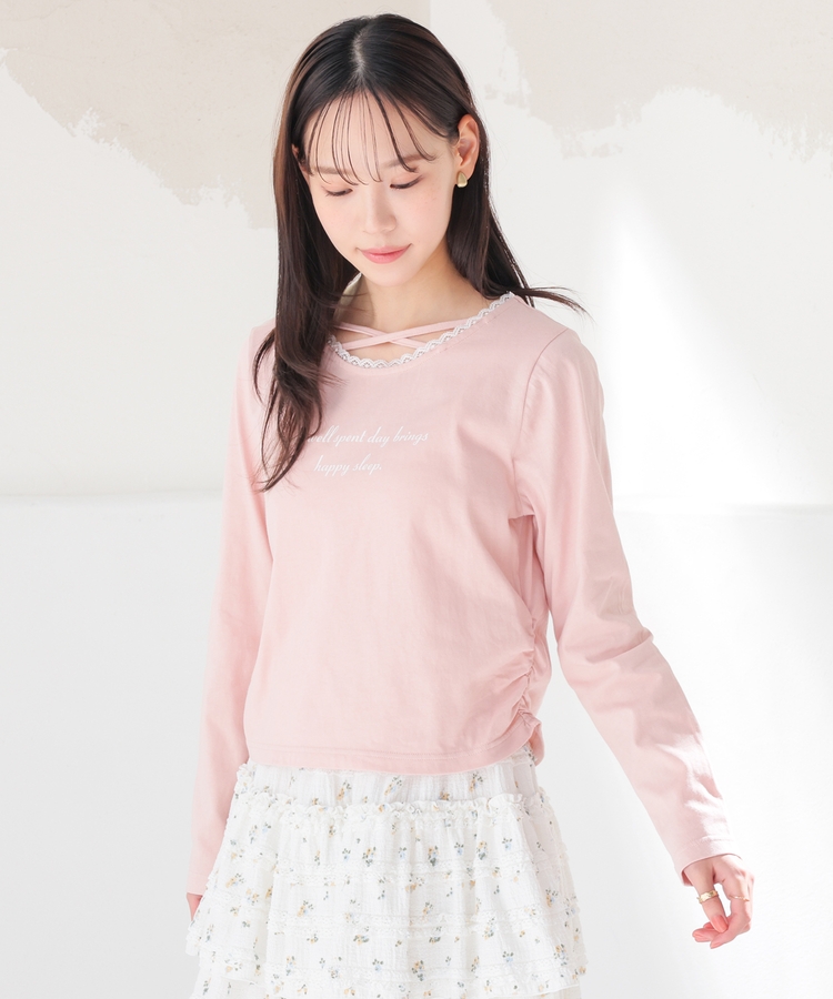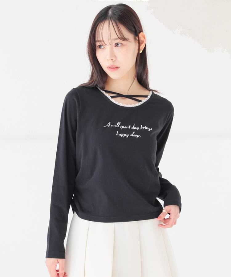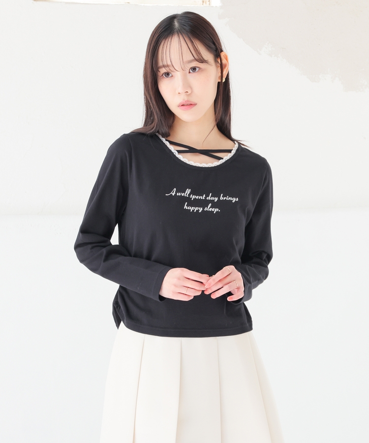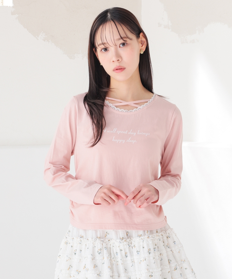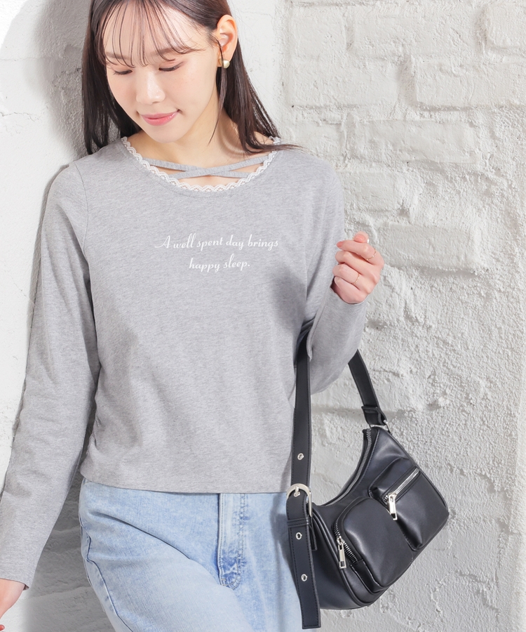 顔周りがすっきり華奢見えする胸元クロスデザイン。