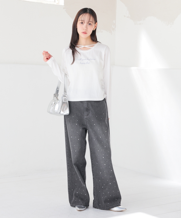 ネックレスなどのアクセサリーが無くても、1枚でお洒落な着こなしに。