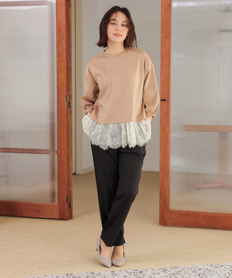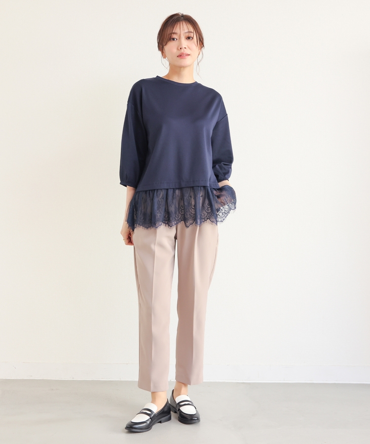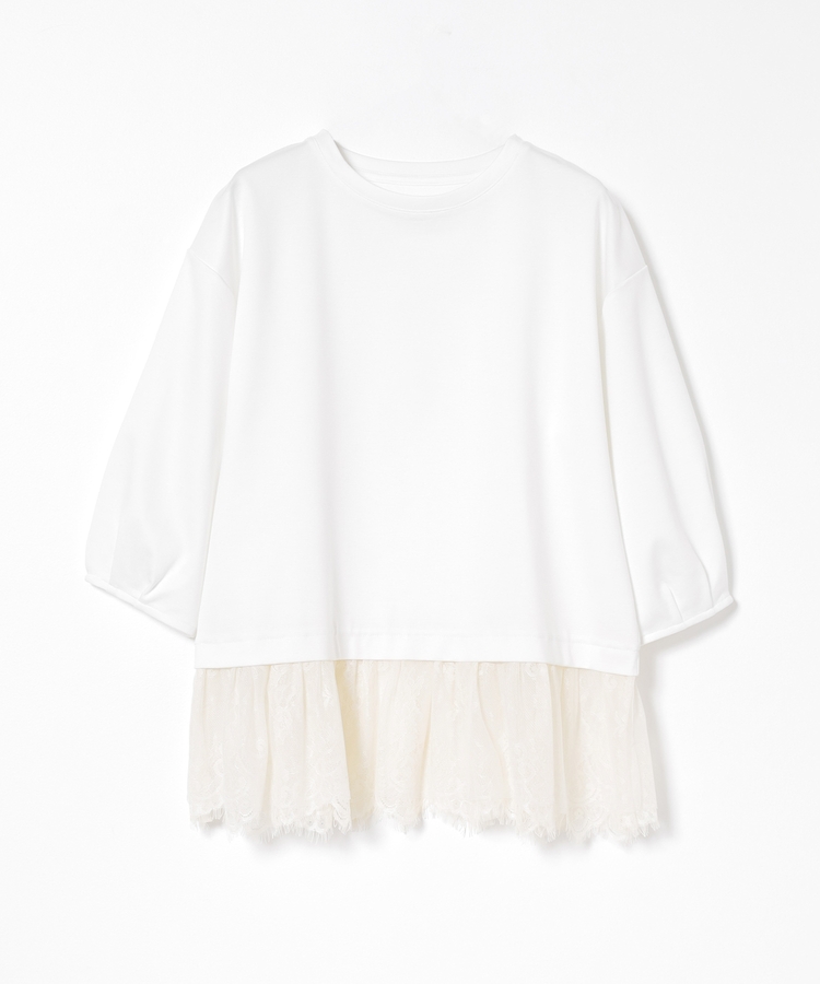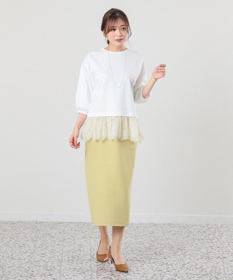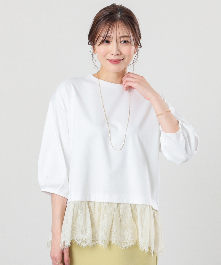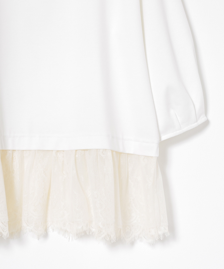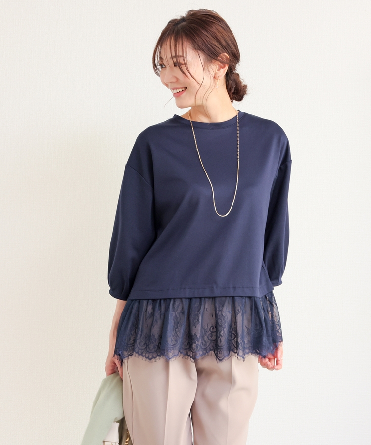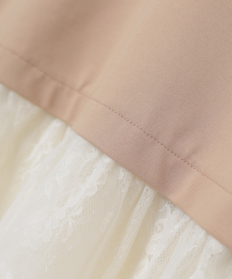 裾から覗くレースがフェミニンで華やかなレイヤード風デザイン。