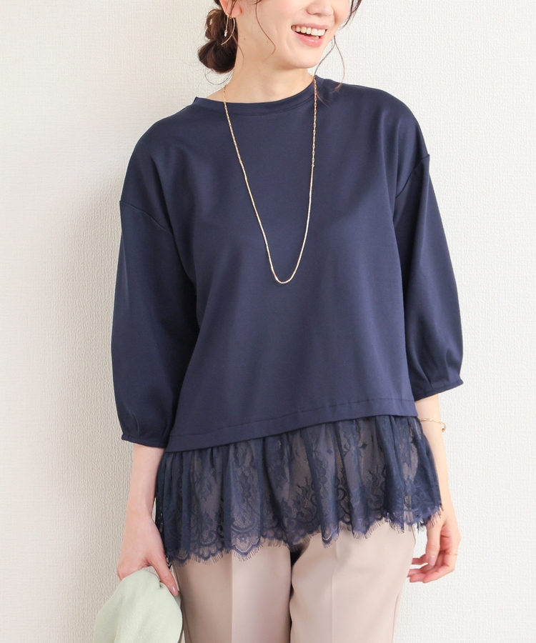 7分袖レースレイヤードトップス