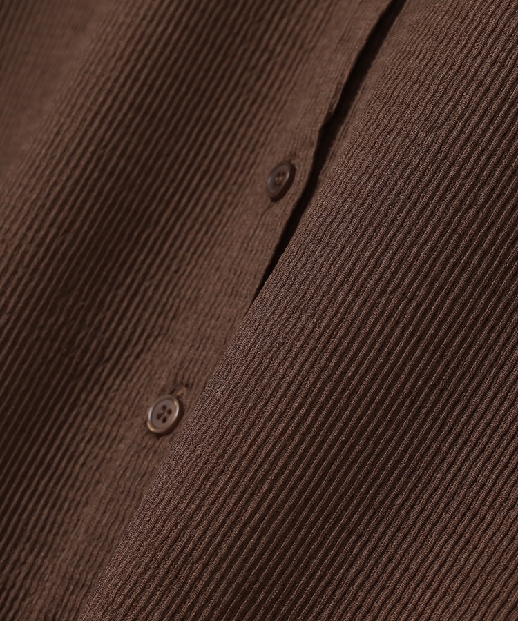 ストレッチの利いた、表面変化のある薄手の楊柳ジャカード素材。