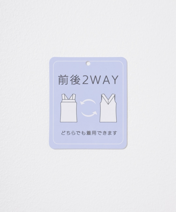 デコルテがきれいに見えるスクエアとVネックの、前後2Wayで楽しめるデザイン。