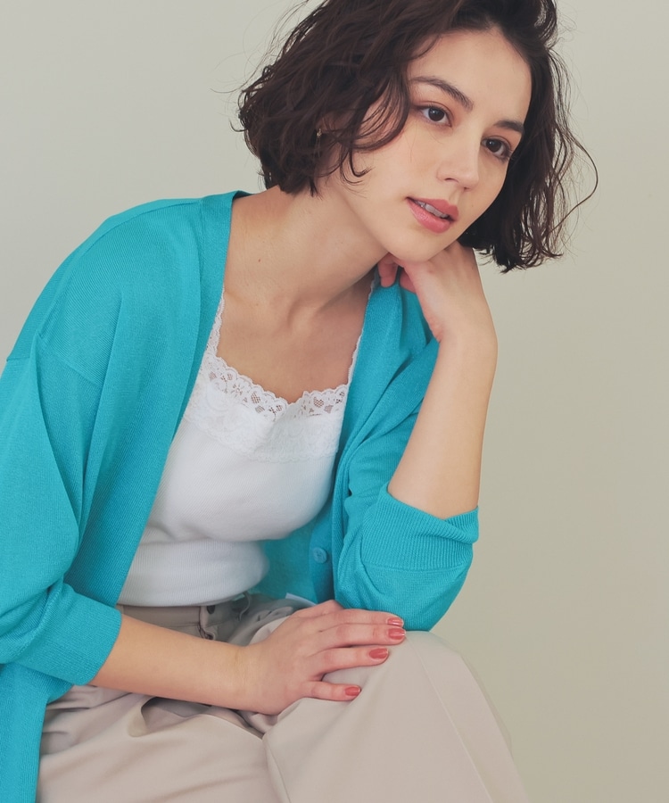 カーデやシャツ、ワンピースなどと合わせてレースを見せるのはもちろん、シアートップスのインナーとしても◎