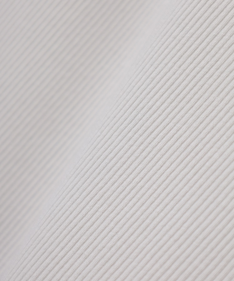 環境に優しい再生ポリエステルを使用した、フィット感がありながらストレッチが利いて快適な着心地の綿混テレコ素材。