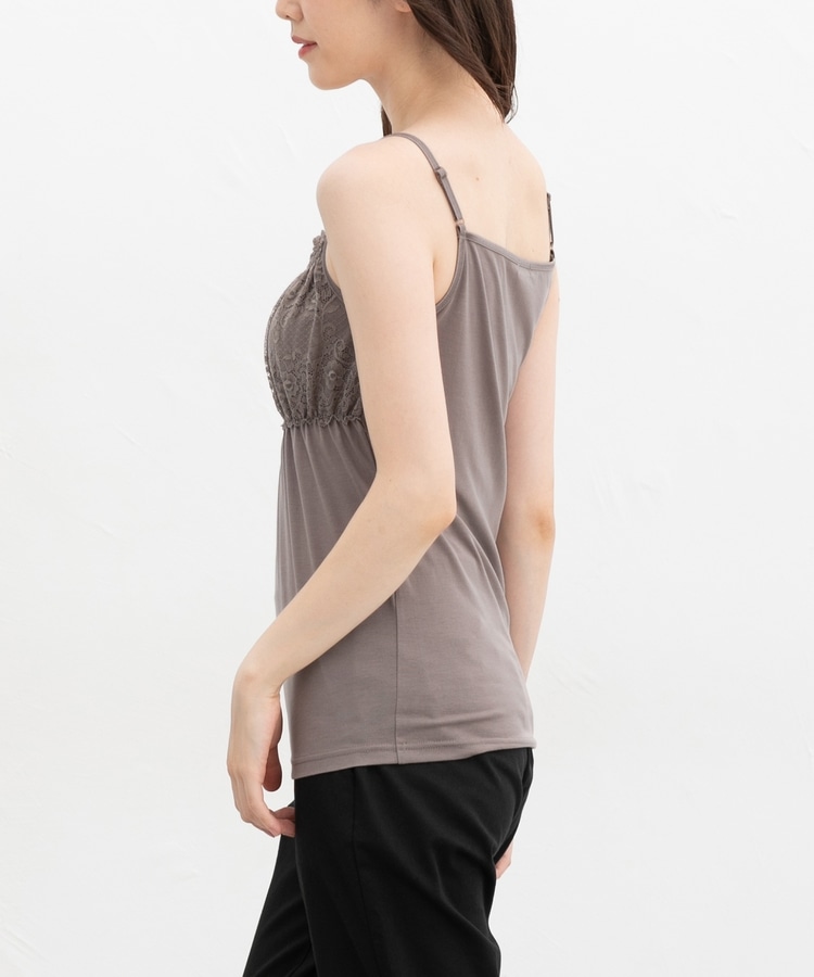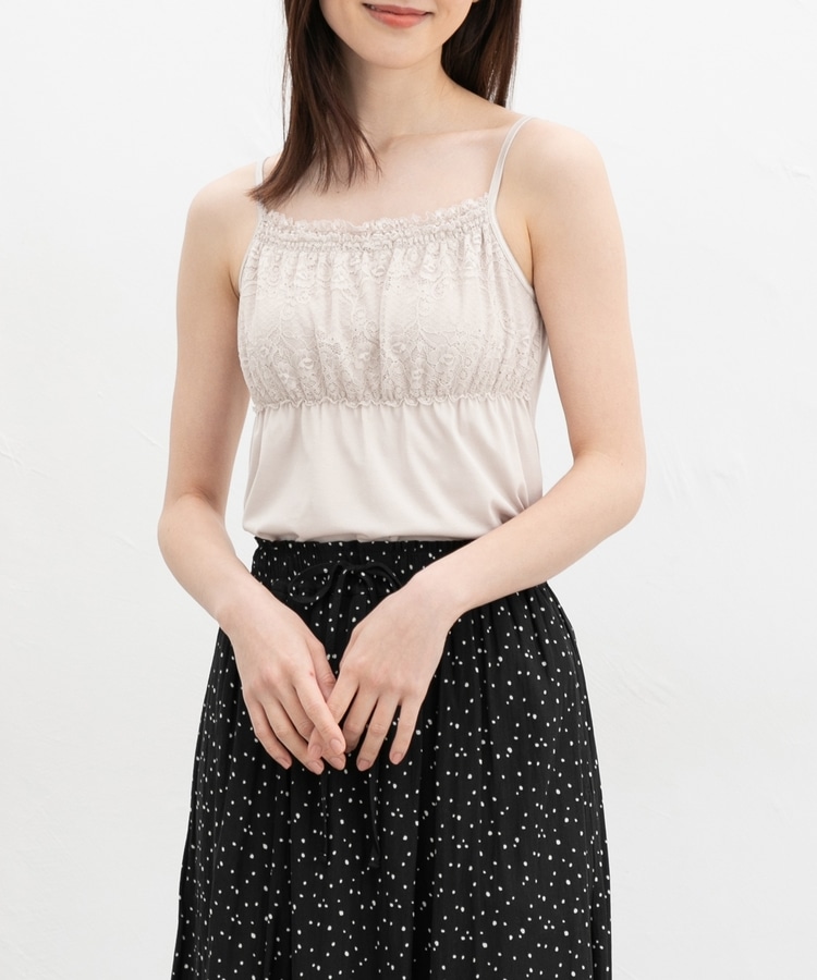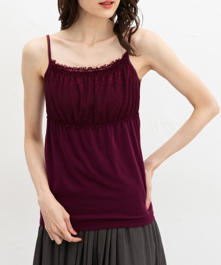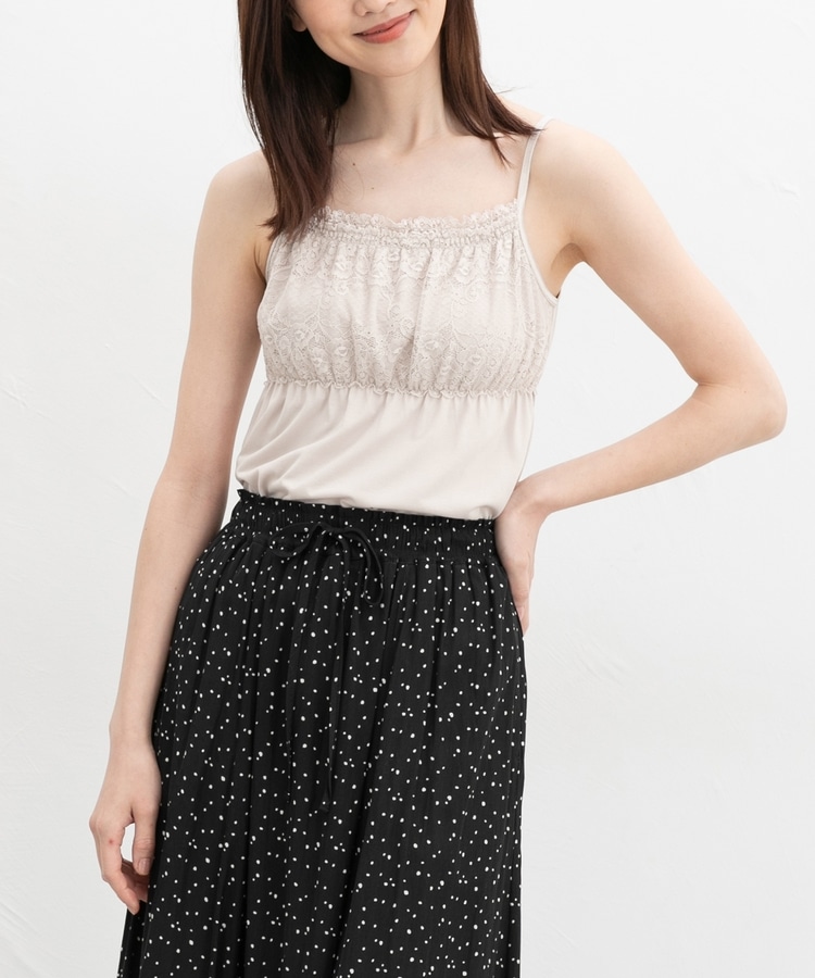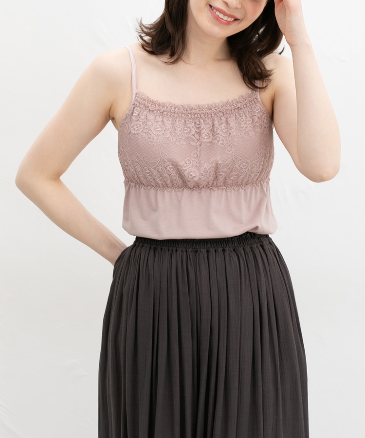 開きの広いトップスと合わせてレースを見せるのはもちろん、薄手のカーデやブラウスのインナーとしても、ロングシーズン毎日大活躍。