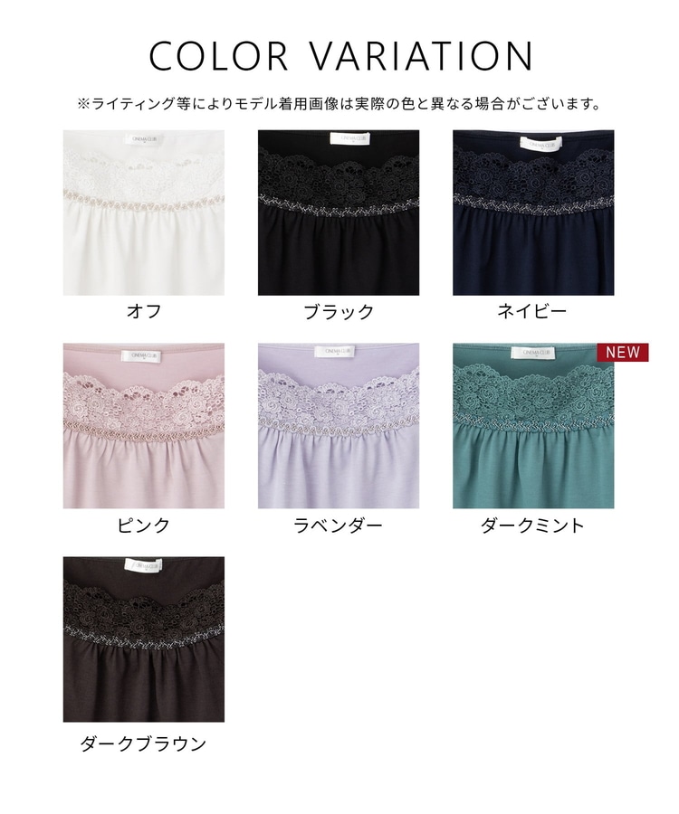 開きの広いトップスと合わせてレースを見せるのはもちろん、シャツやワンピースのインナーとしても、ロングシーズン毎日大活躍。