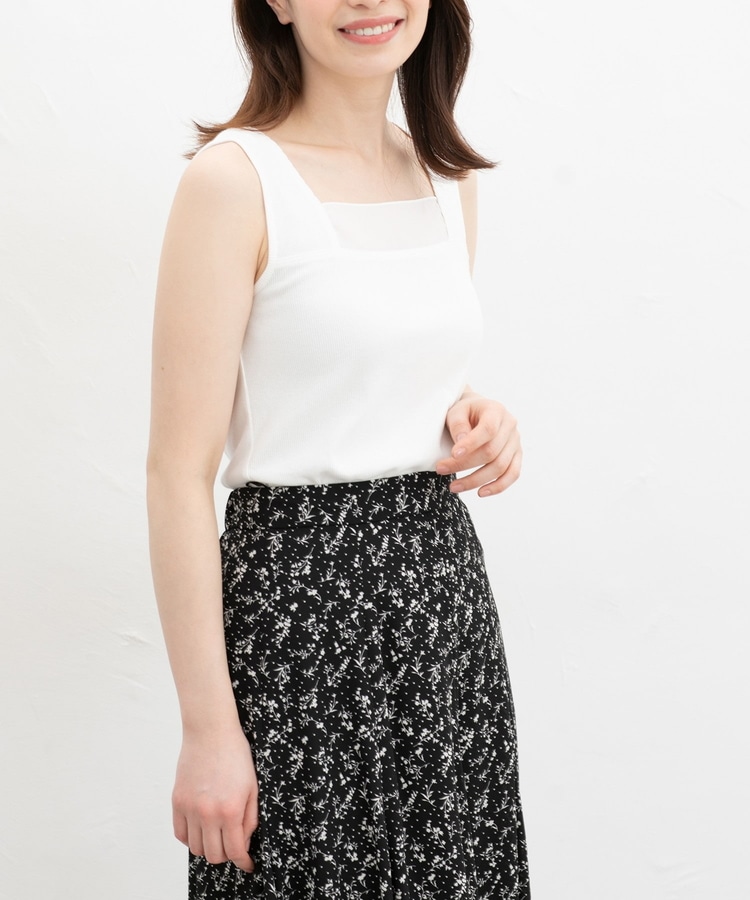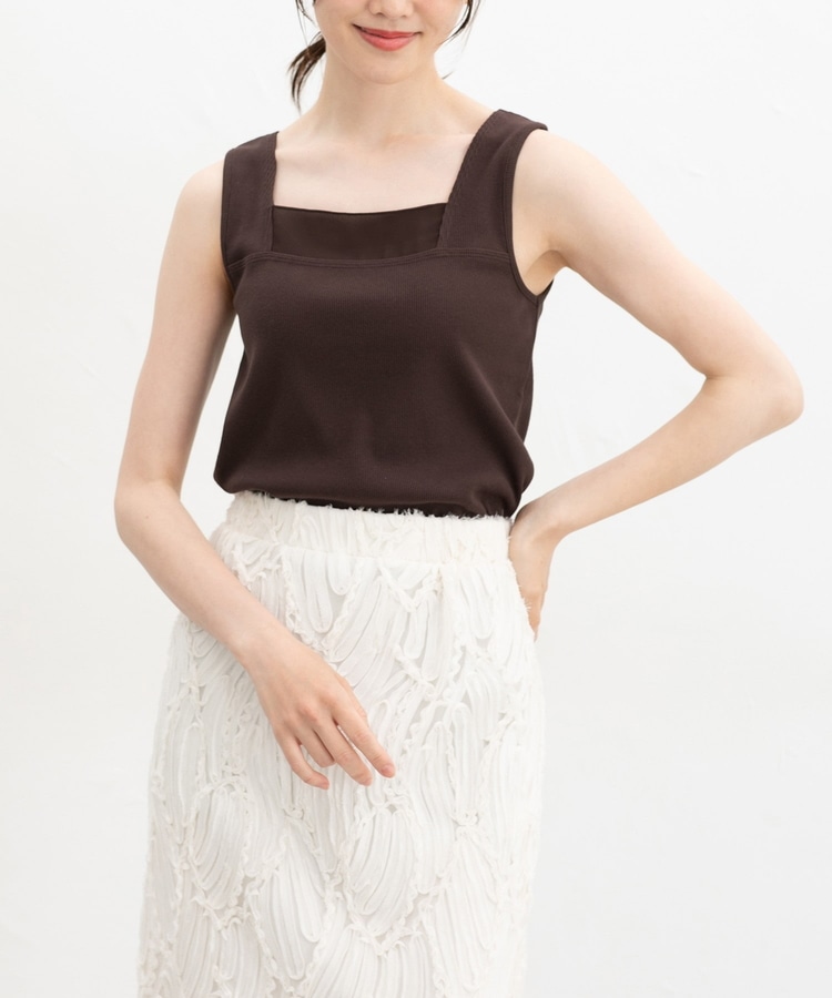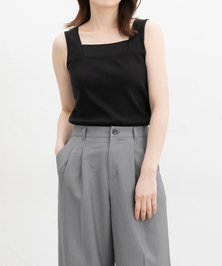 デコルテラインをすっきりと見せながら安心感もあるスクエアネックでコーデに抜け感をプラス。