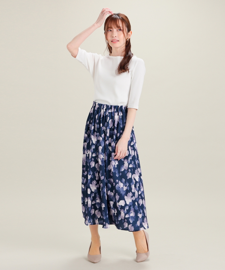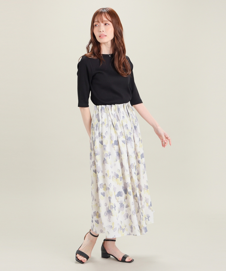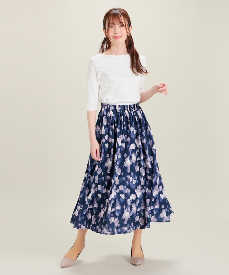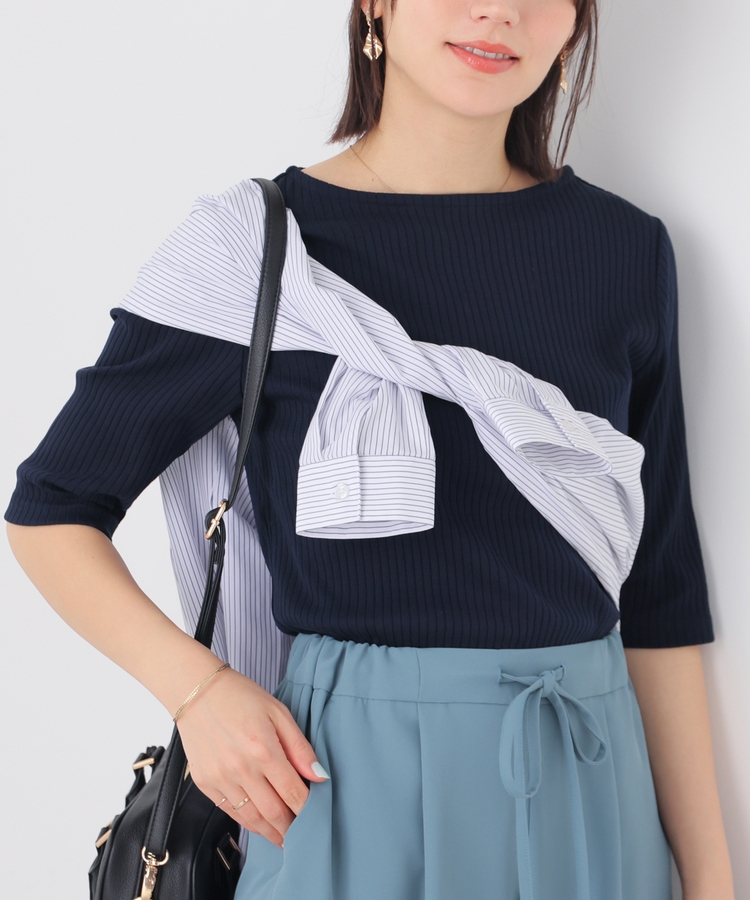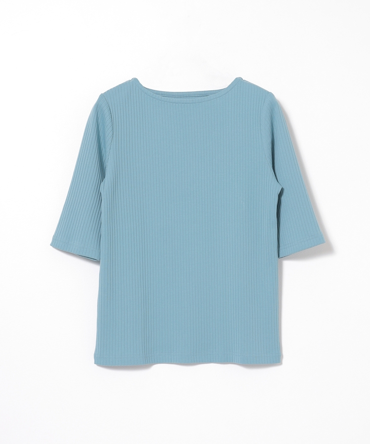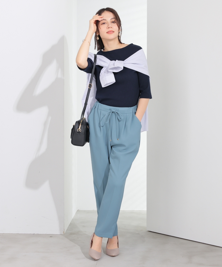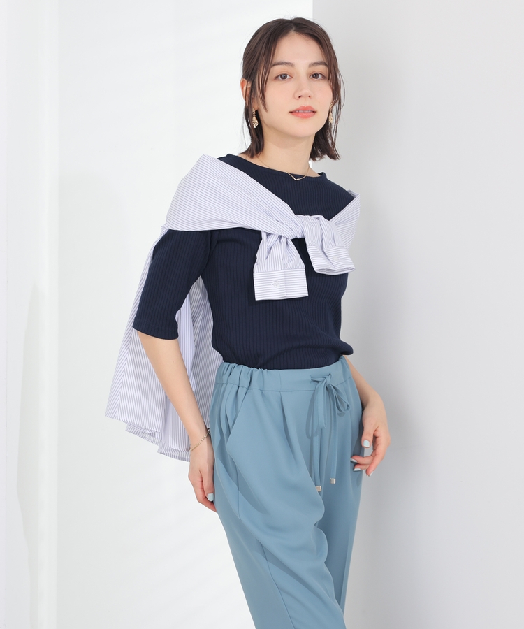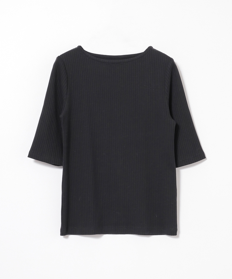 デコルテの露出を抑えたボートネックの、シンプルで上品なデザイン。
