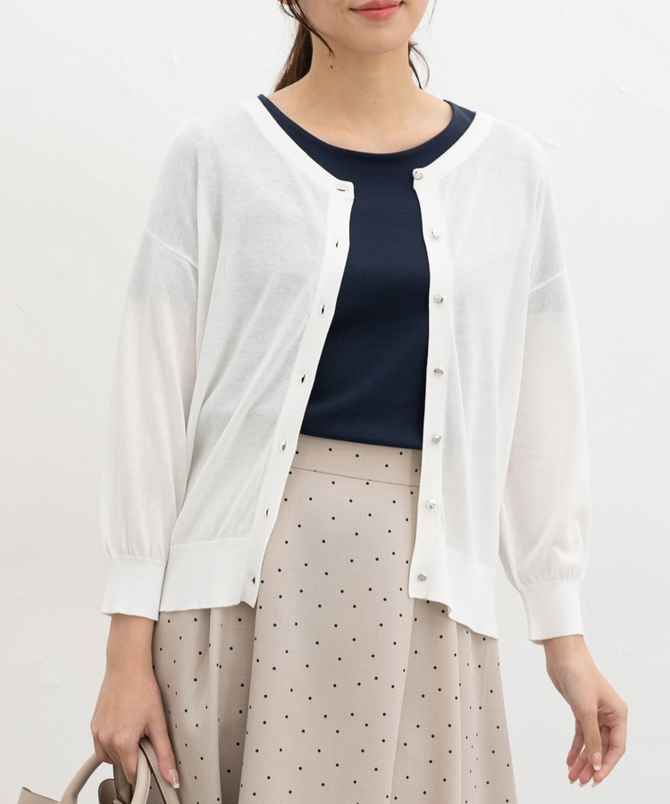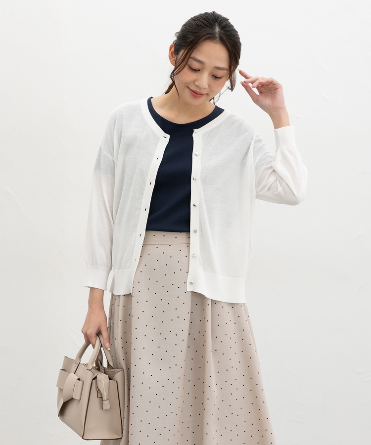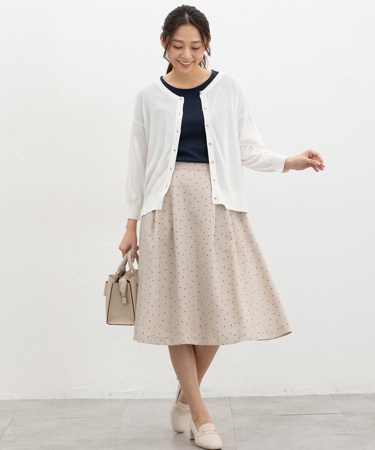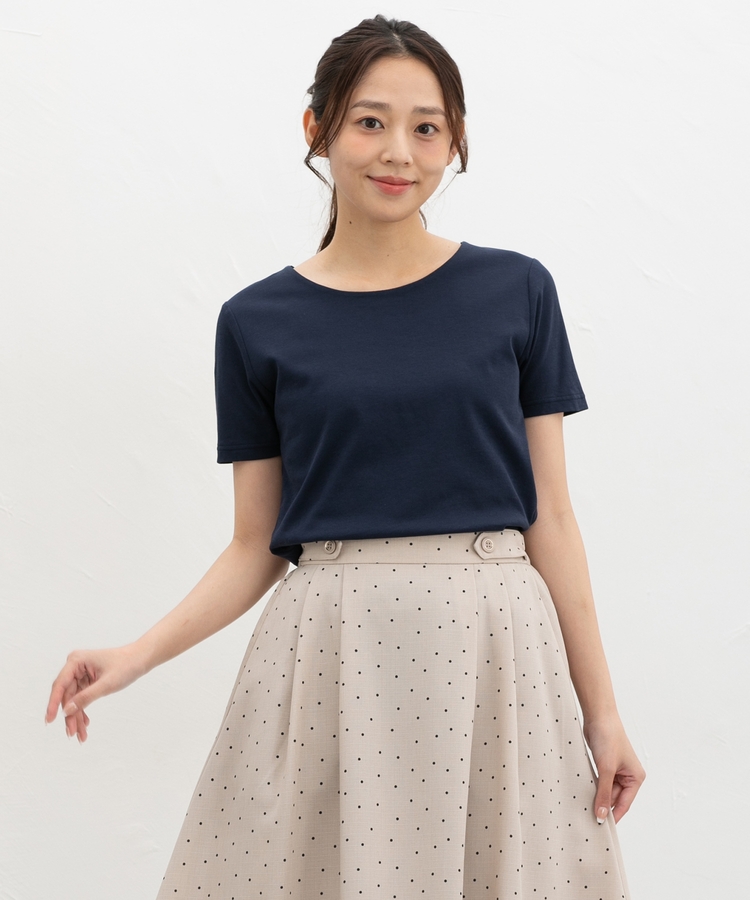 1枚でも、ジャケットやカーディガンのインにも使え、テーパードパンツやフレアスカートなどと合わせた、お仕事やお出かけのきれいめスタイルに活躍。