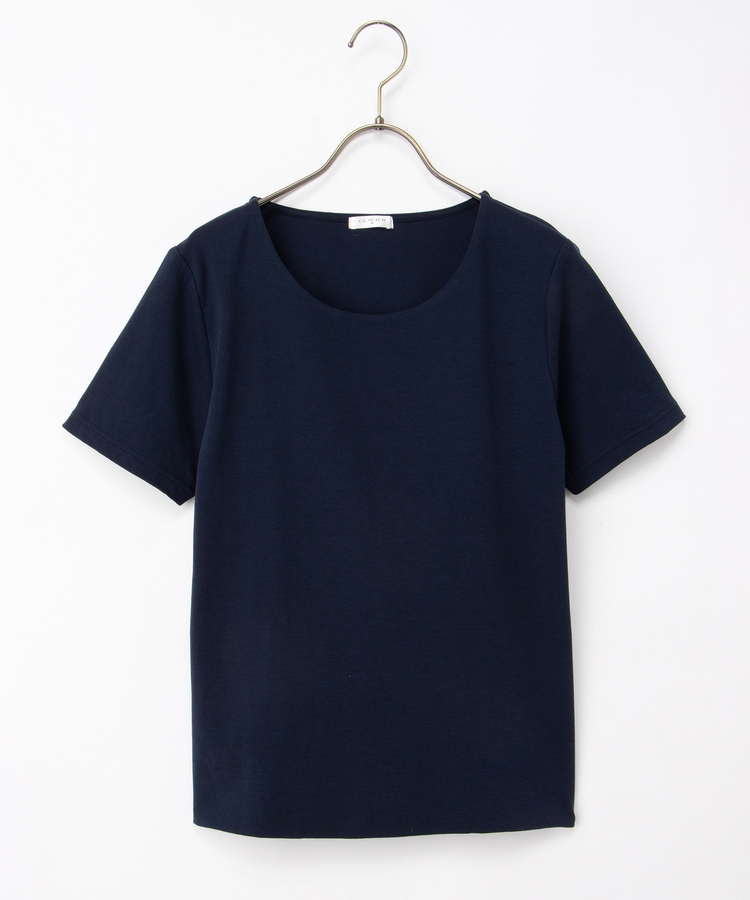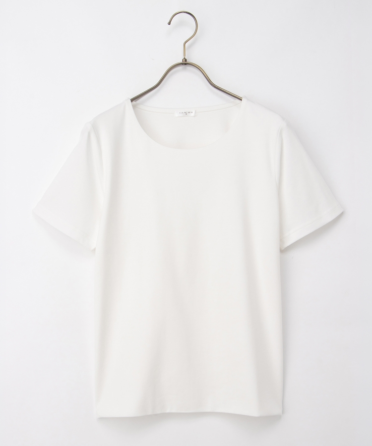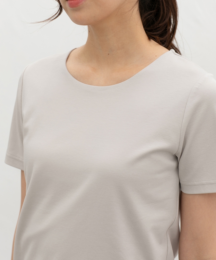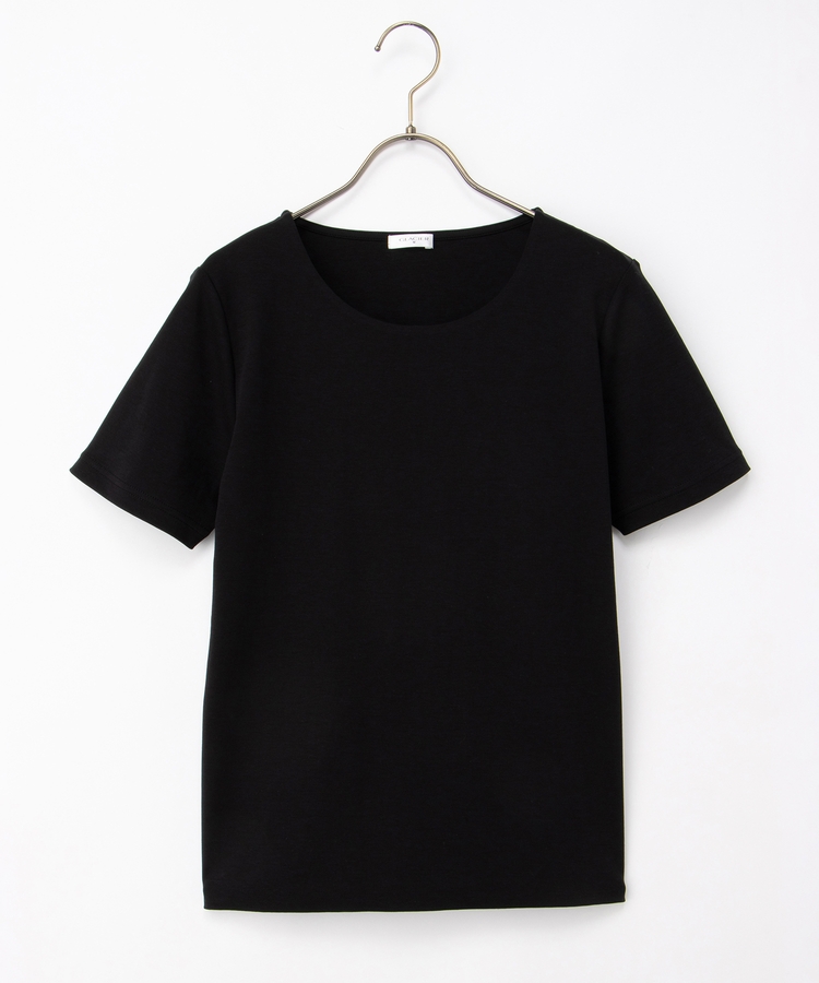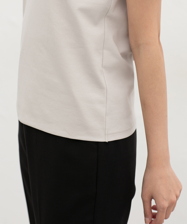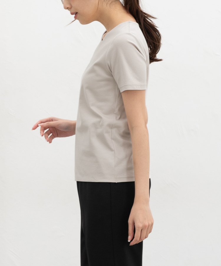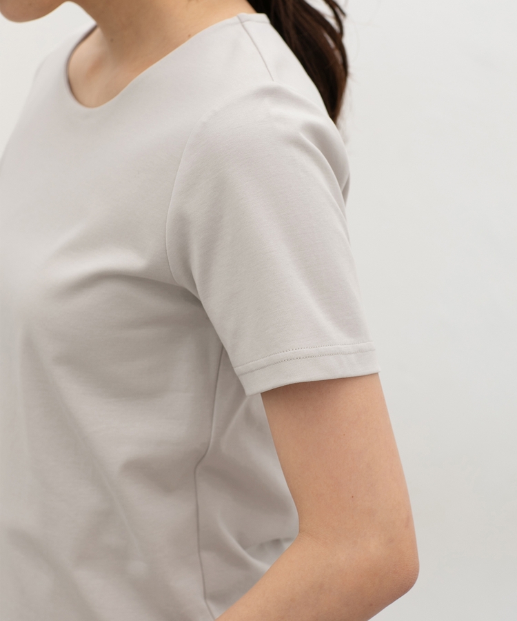 ステッチをなくした広すぎないクルーネックで、高見えが叶う上品デザイン。