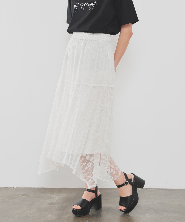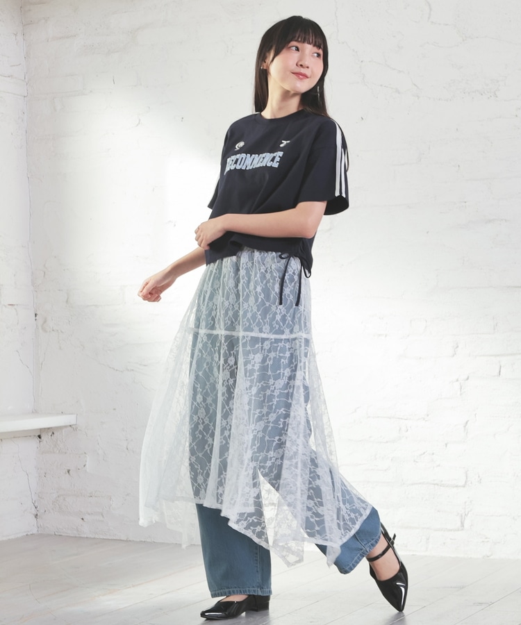 ペチコートを付けてフェミニンなスカートとしてはもちろん、外してデニムやショートボトムとのレイヤードを楽しむの◎