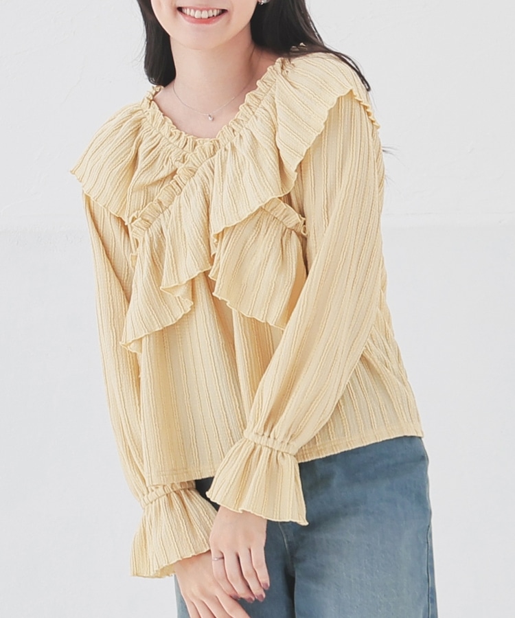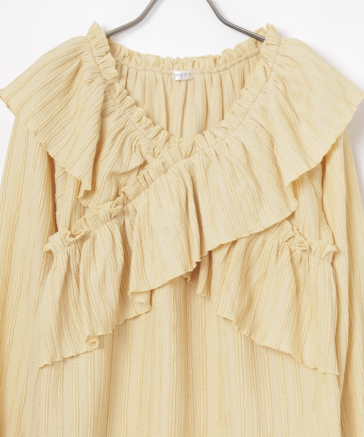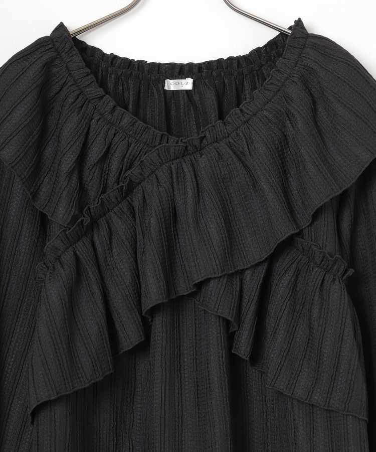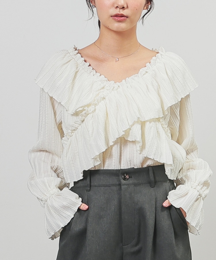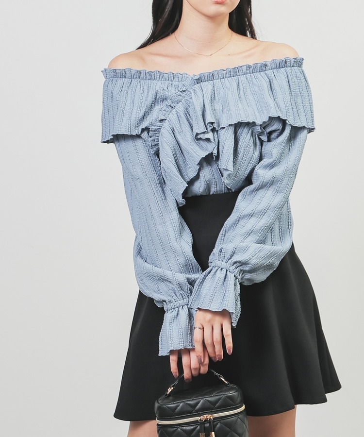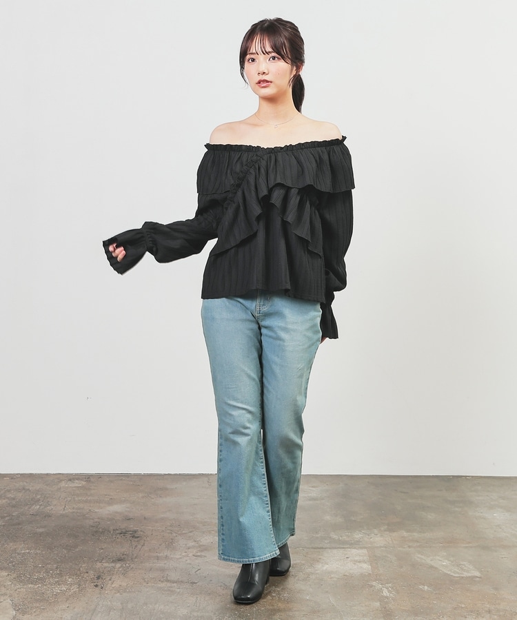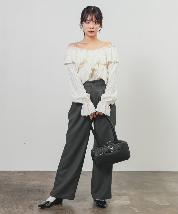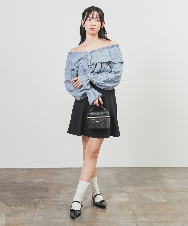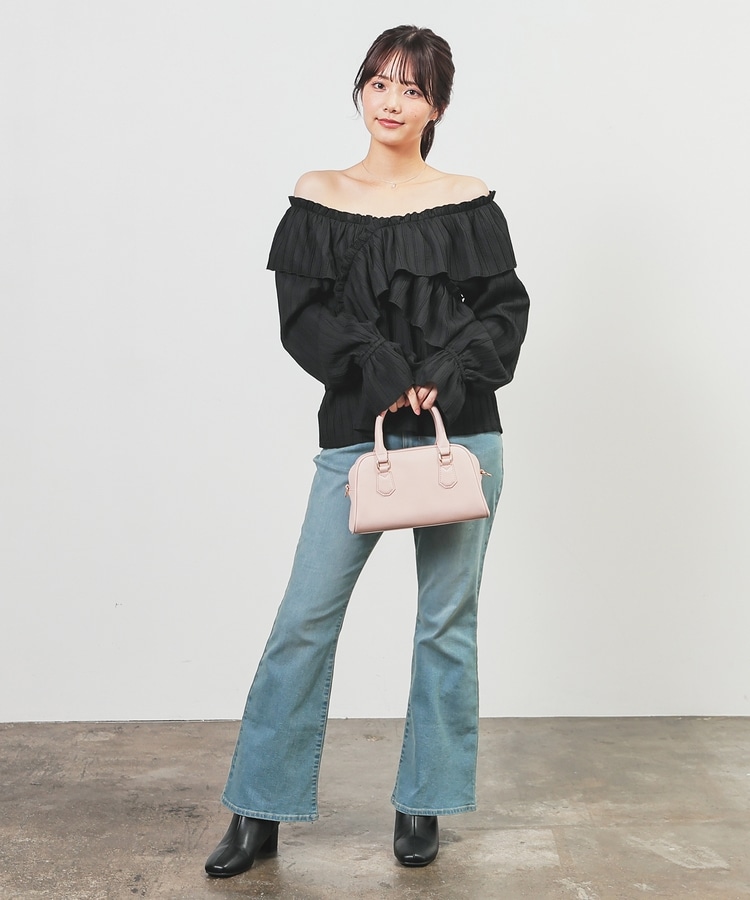 首元すっきりのVネックと肩を落としたオフショルの2wayで着られるデザイン。