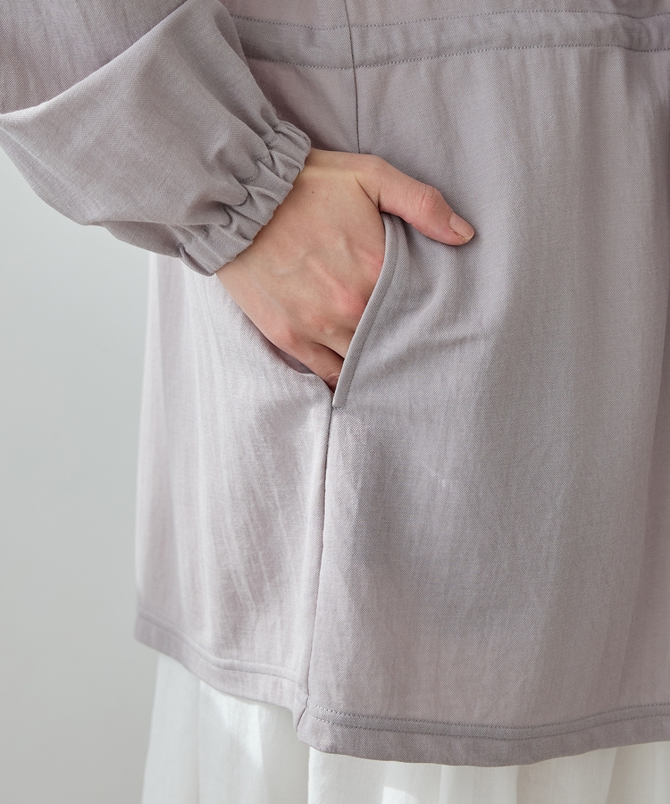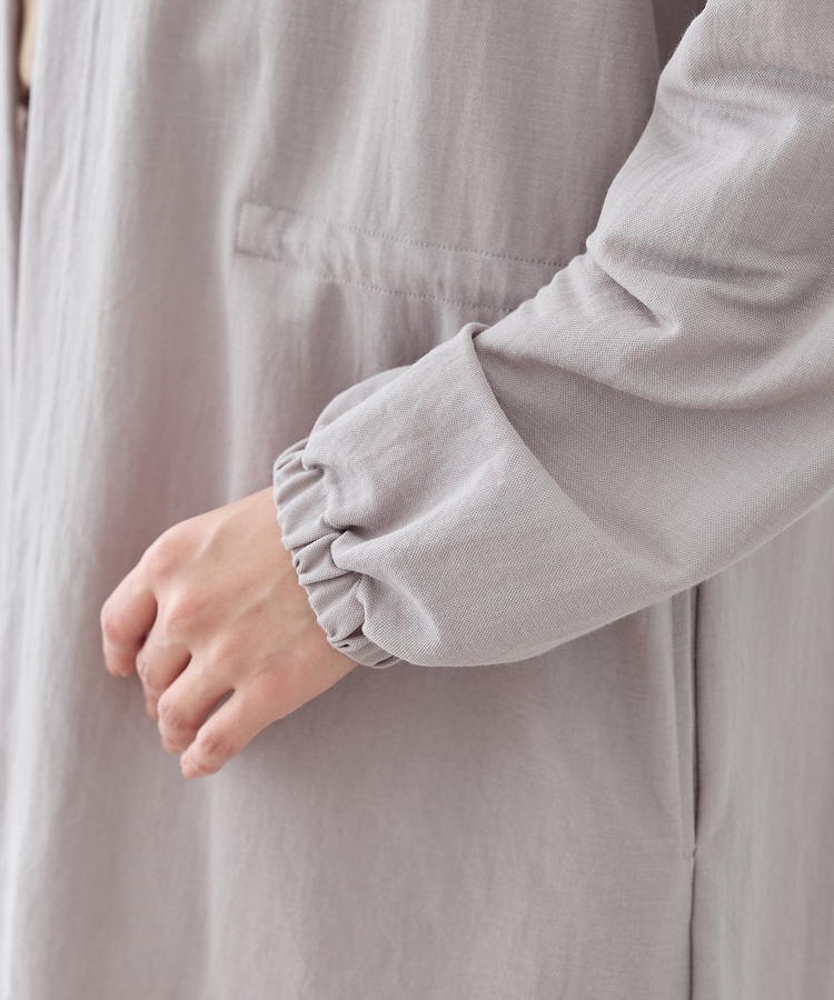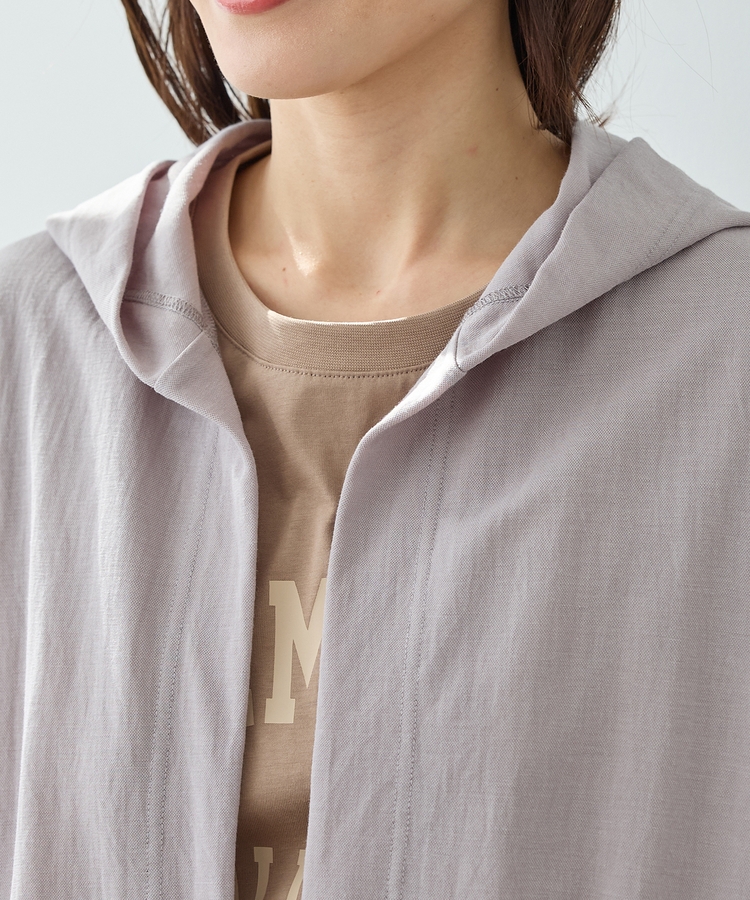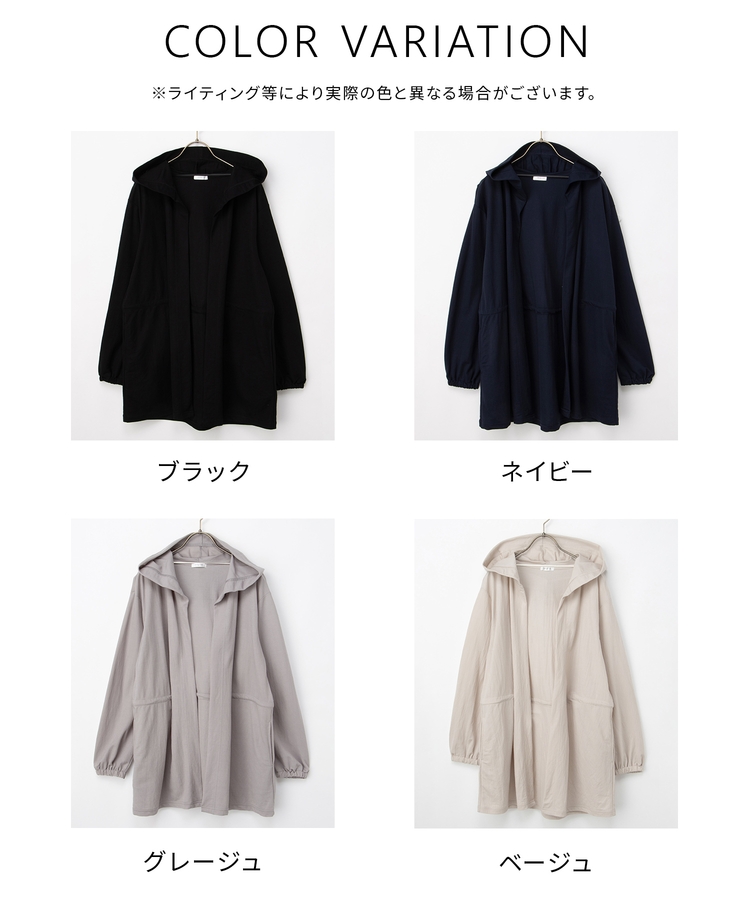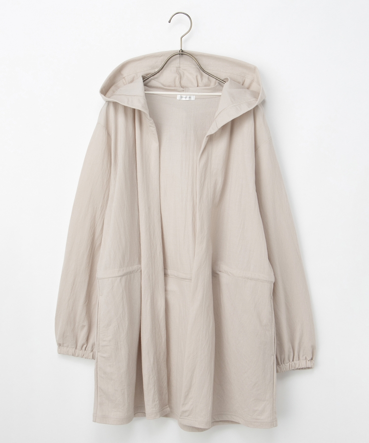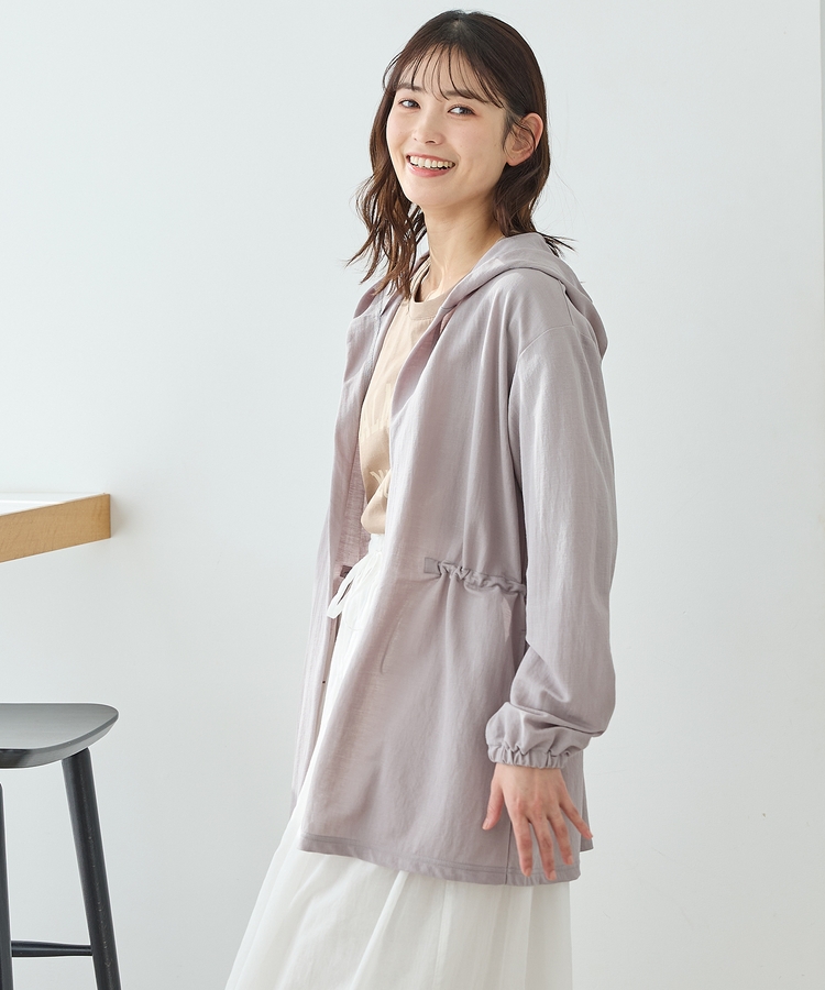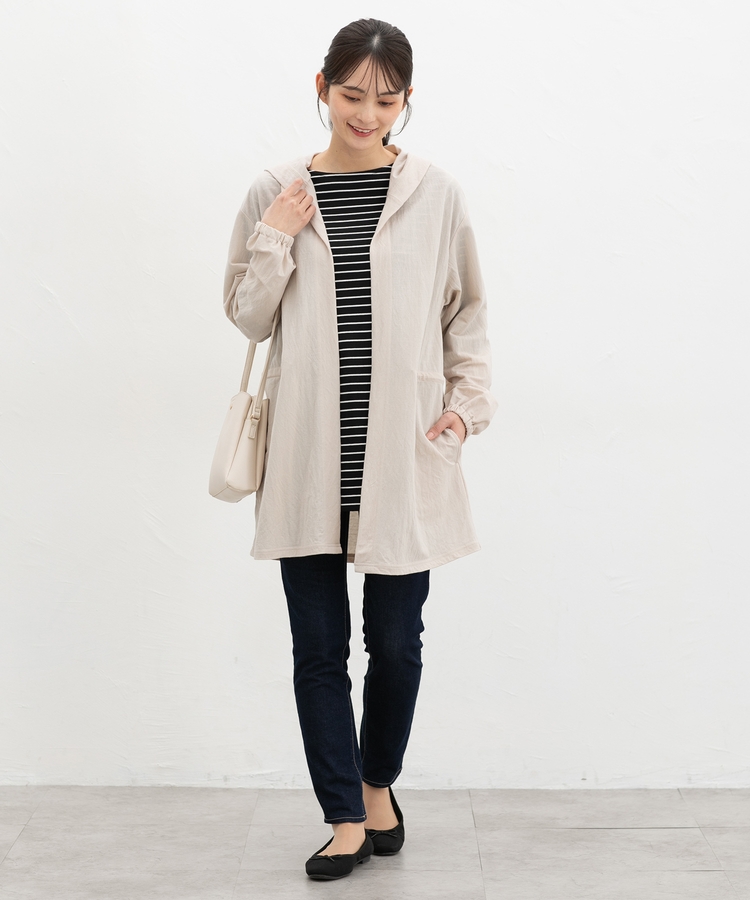 さっと手軽に羽織れるボタンレスで、ウエスト内側のドロストを絞ってシルエットチェンジも楽しめるデザイン。