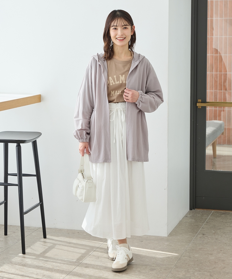 ゆったりめの幅とヒップまですっぽり隠れる丈感で体型もカバー。