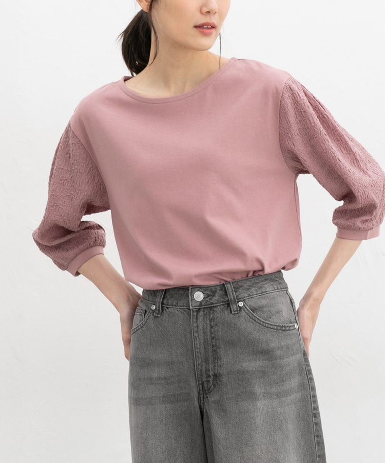 ポコポコした表面感のふんわり袖が大人可愛いデザイン。