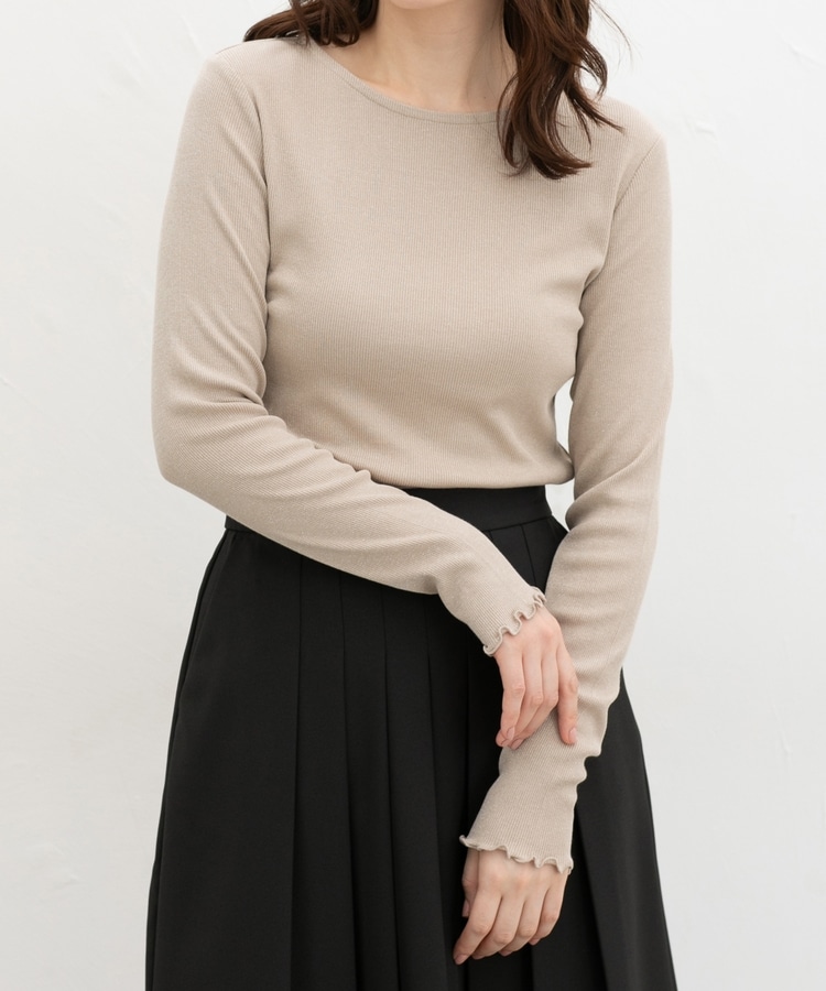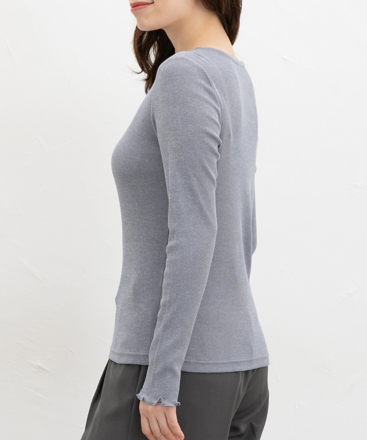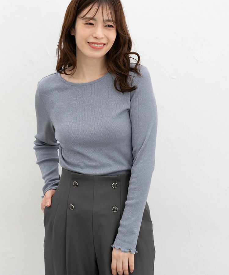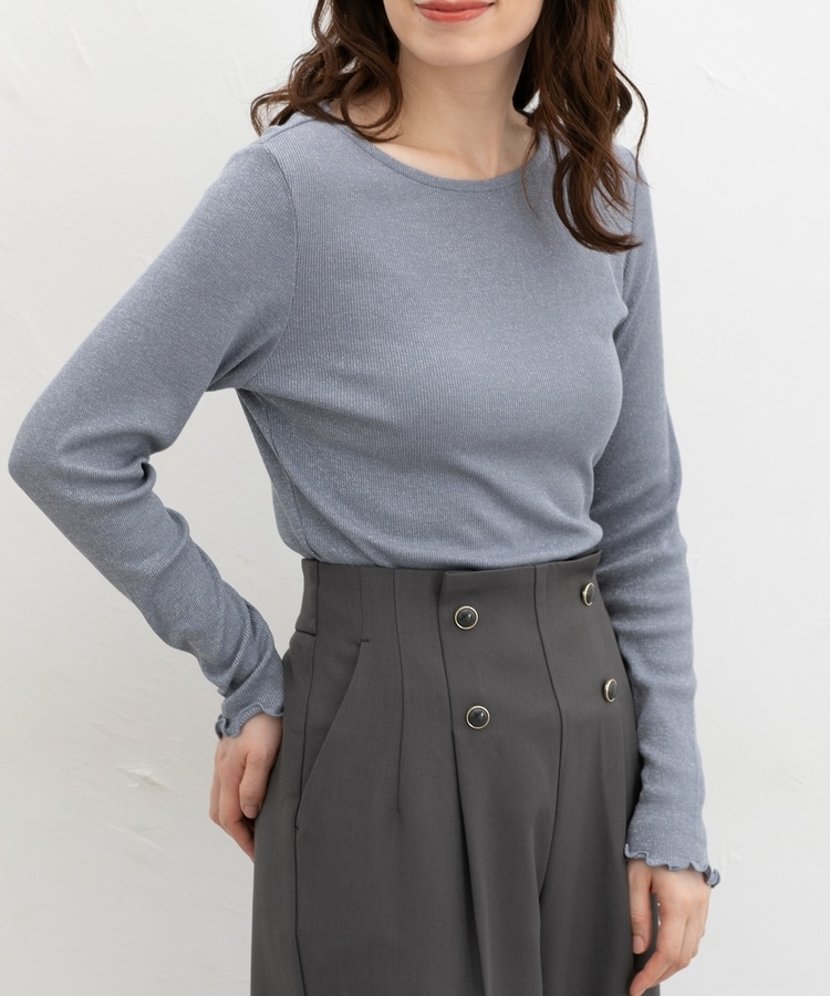 ラメ入り素材と袖口のメローがおしゃれなデザイン。
