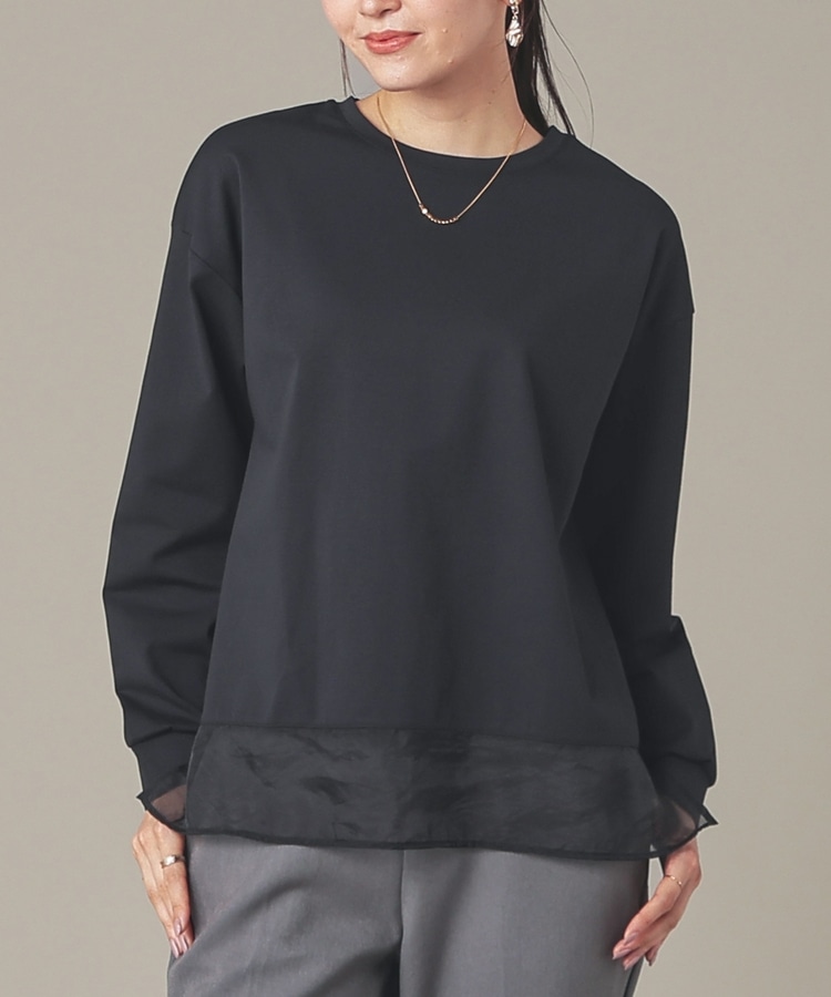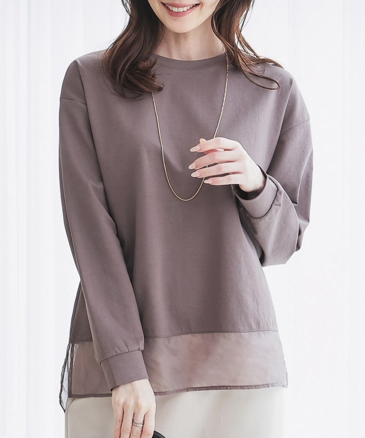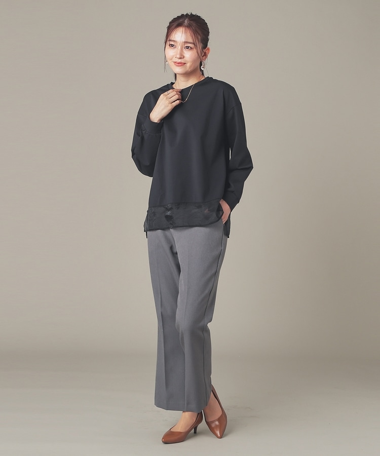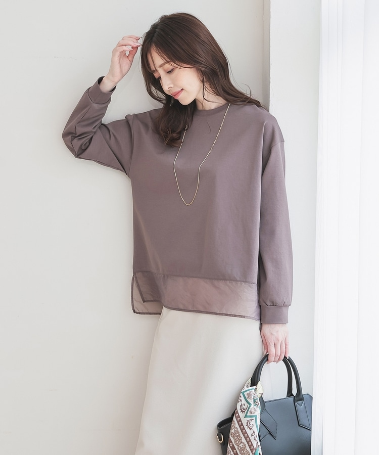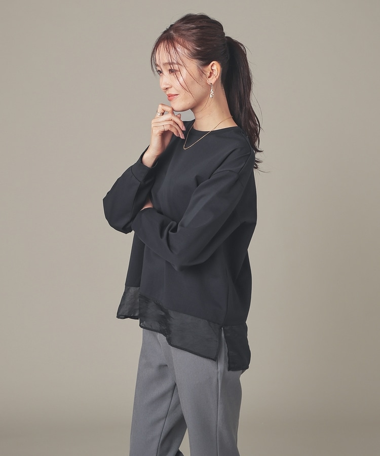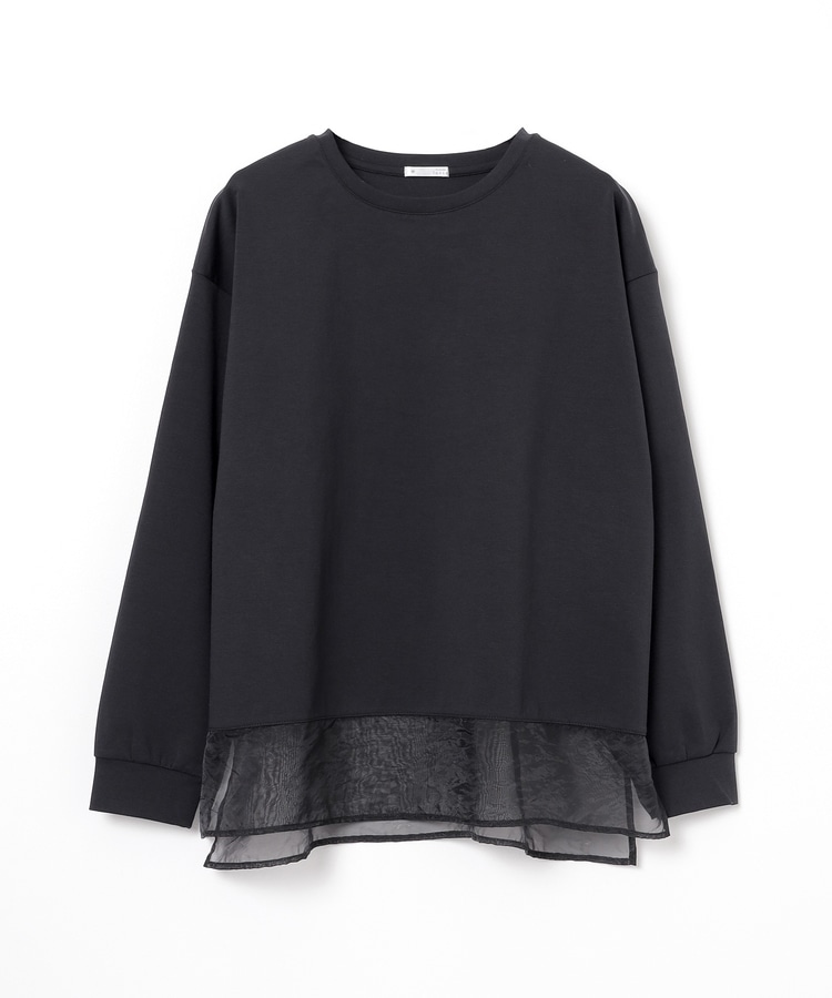 裾部分を柔らかなオーガンジー素材で切り替えた、華やかでこなれ感のあるデザイン。