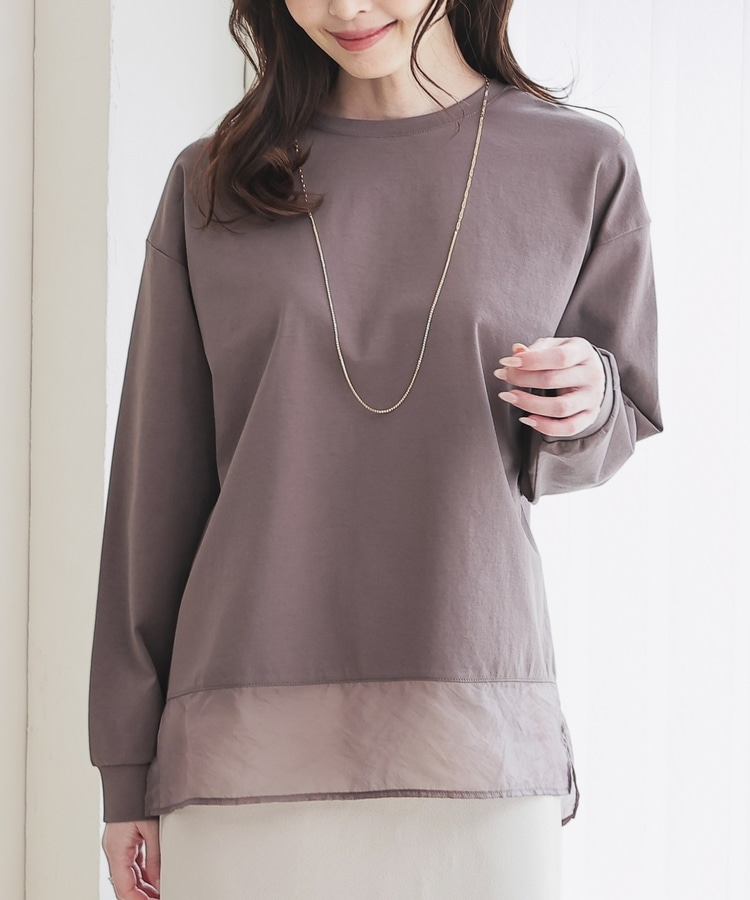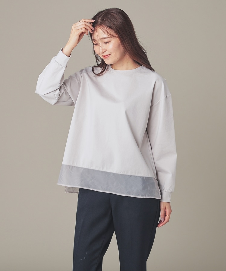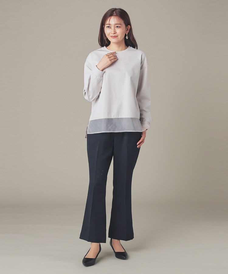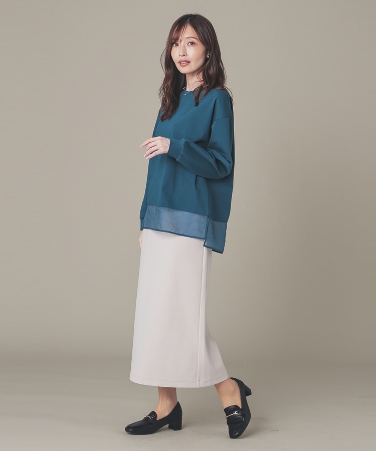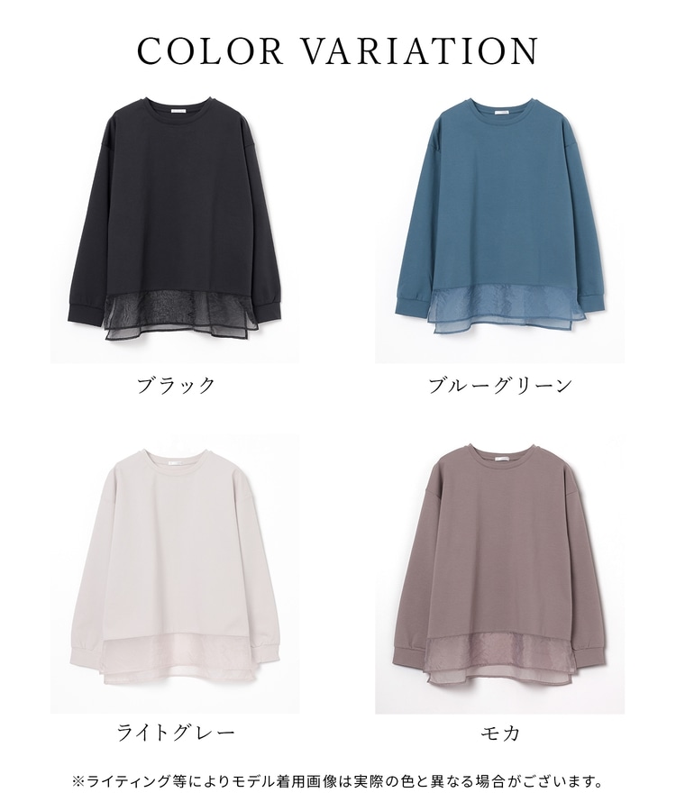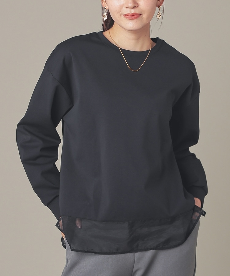裾部分を柔らかなオーガンジー素材で切り替えた、華やかでこなれ感のあるデザイン。