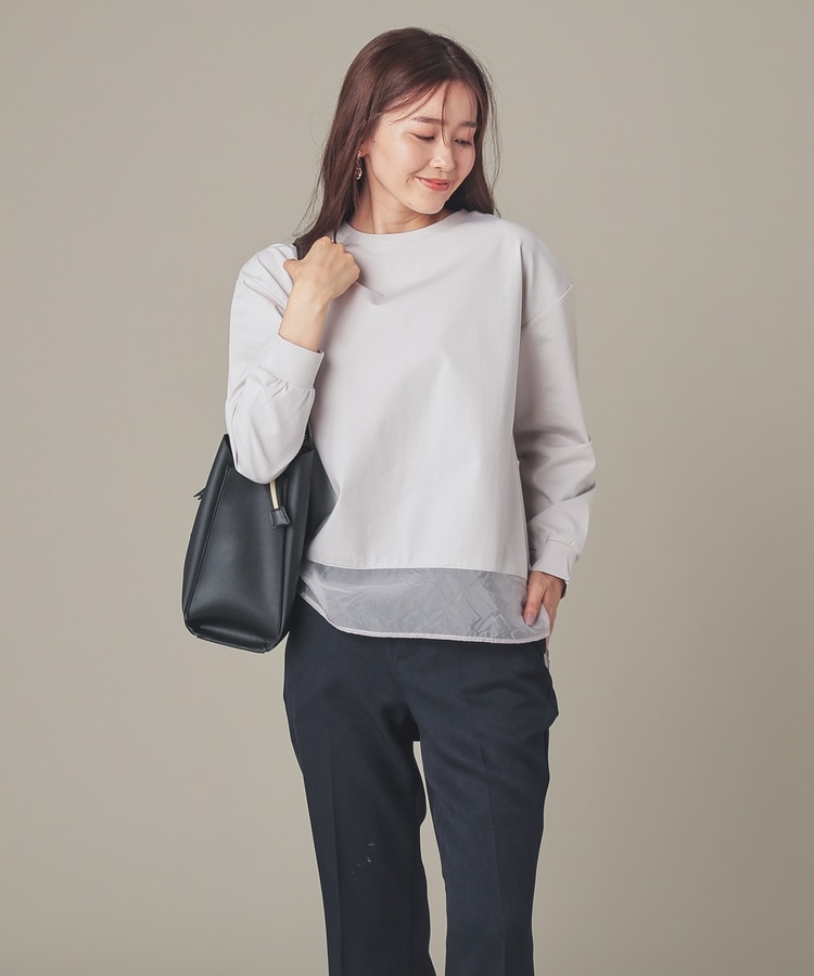 1枚ではもちろん、ニットやカーディガンをレイヤードして裾から覗かせるのも◎