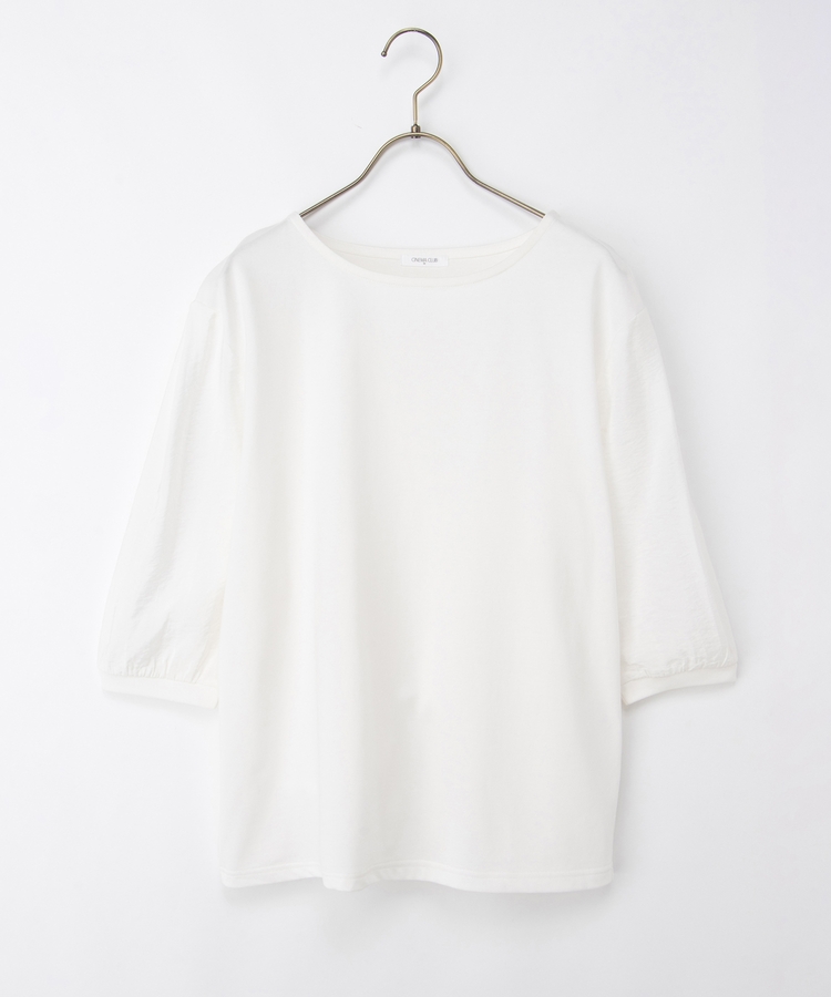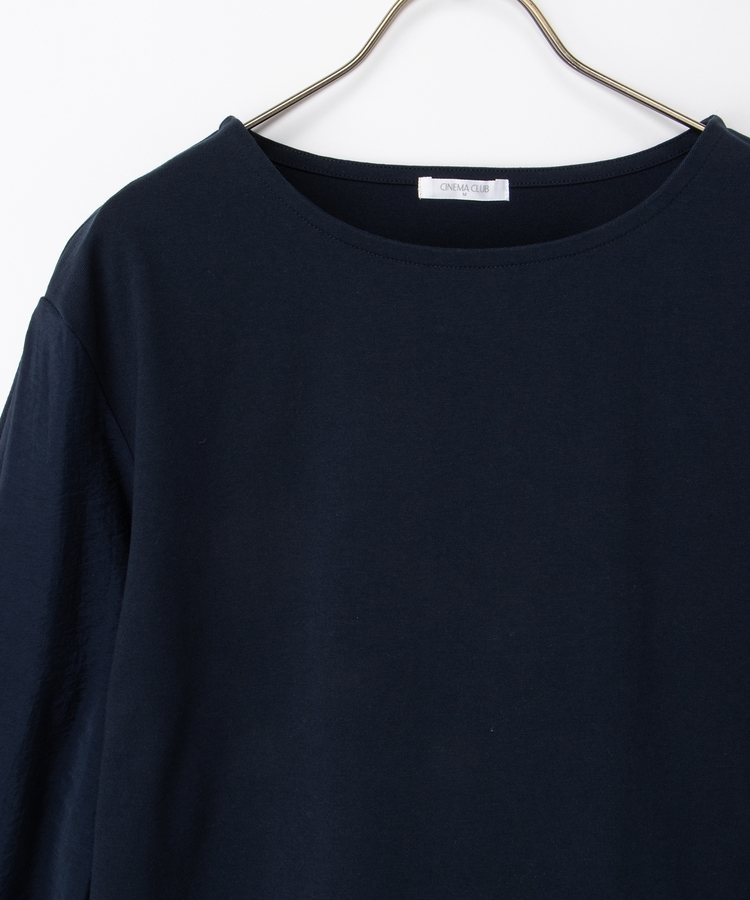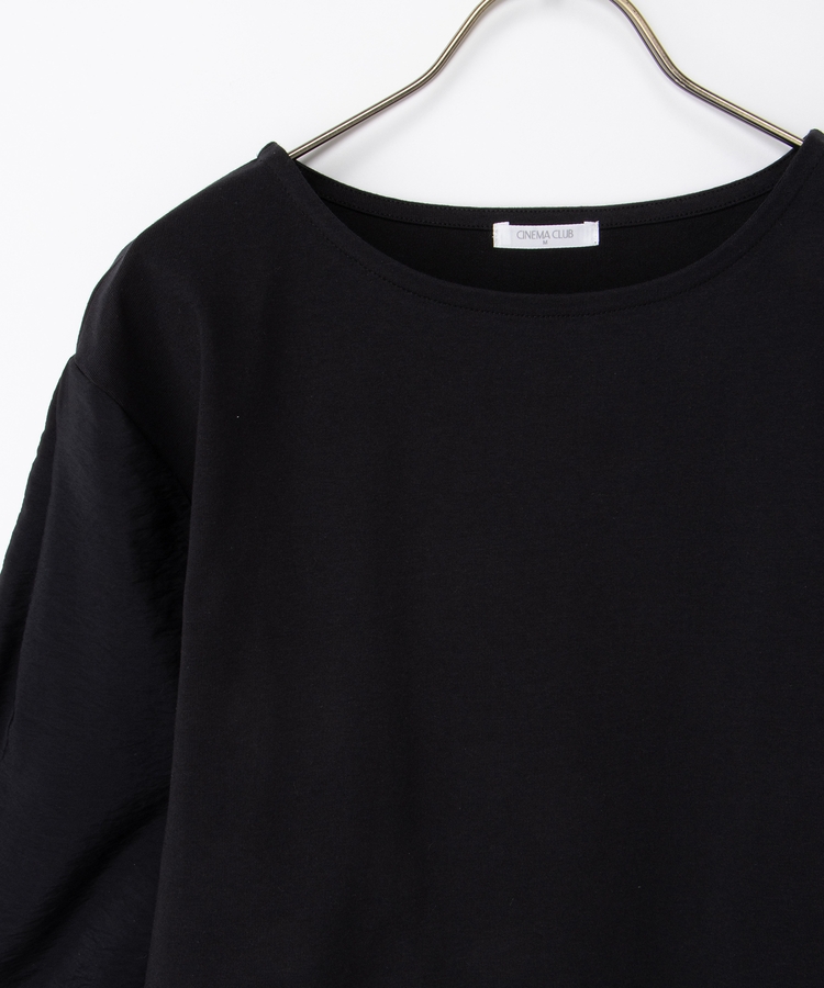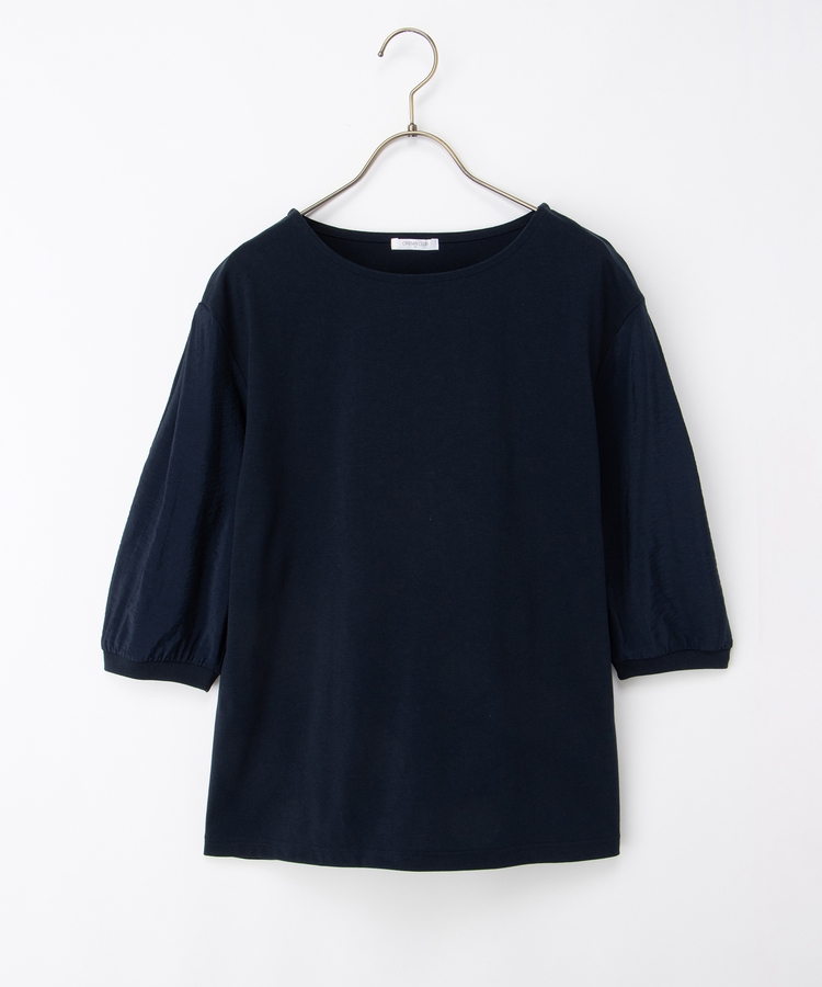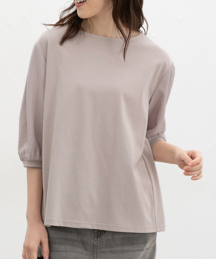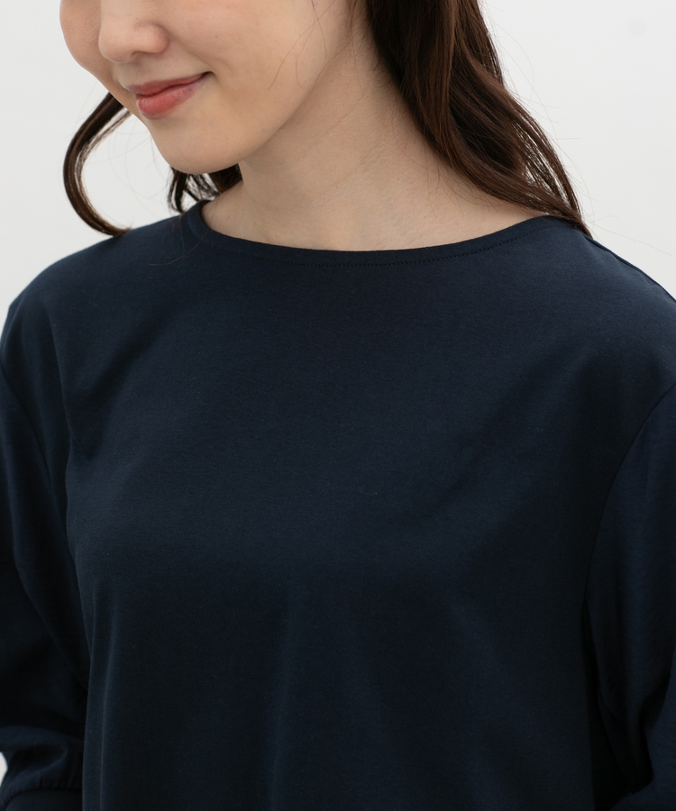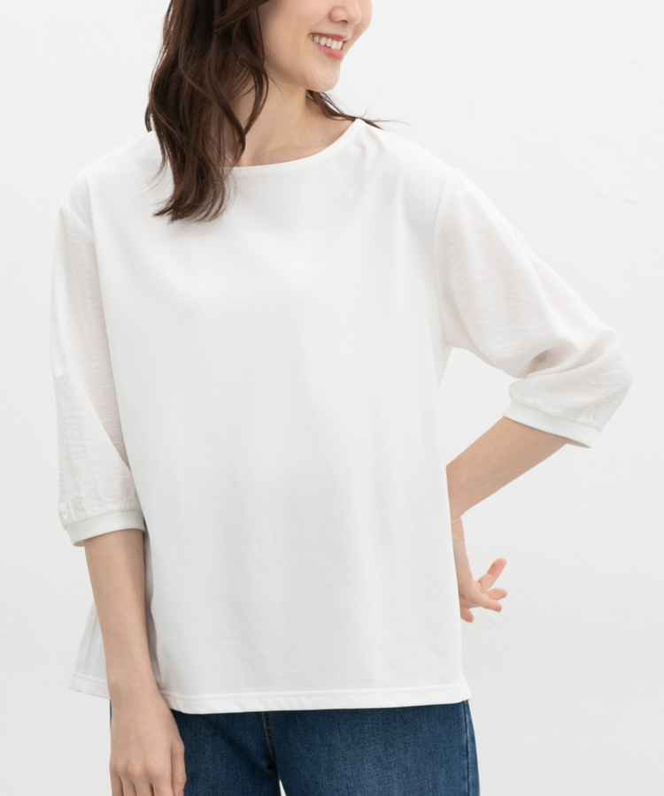 ほどよい透け感のふんわり袖とたっぷりギャザーのバック切り替えが大人可愛いデザイン。