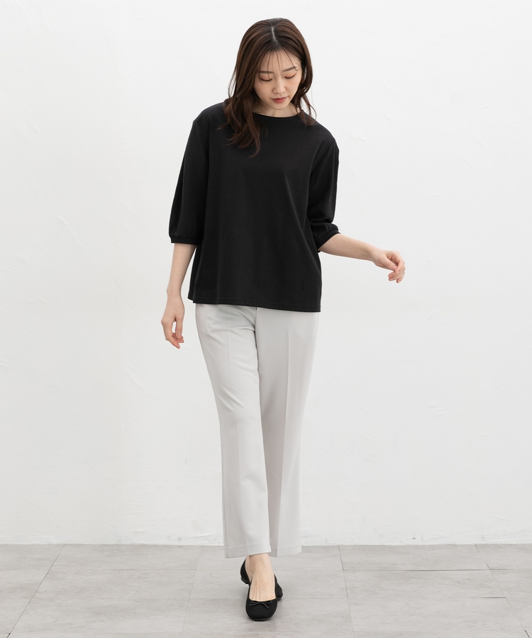 フェミニンなナロースカートやロングスカート、カジュアルなデニムやストレートパンツなど、どんなボトムスとも合い、幅広い着回しに毎日大活躍。