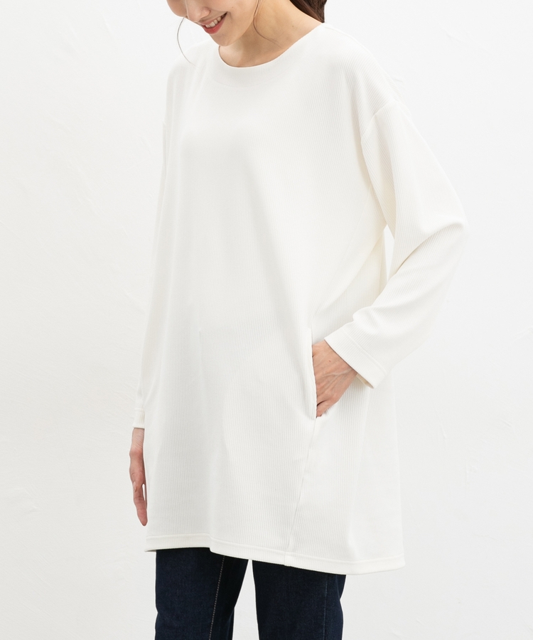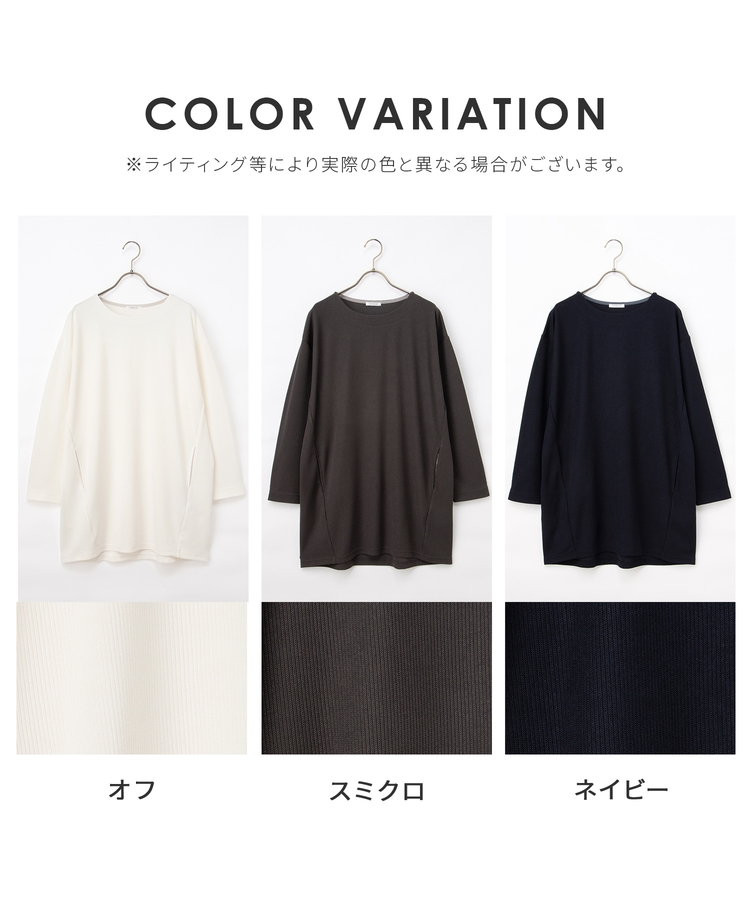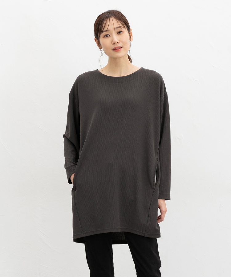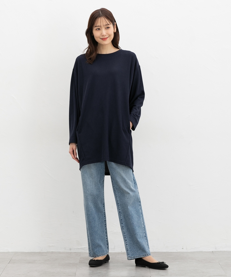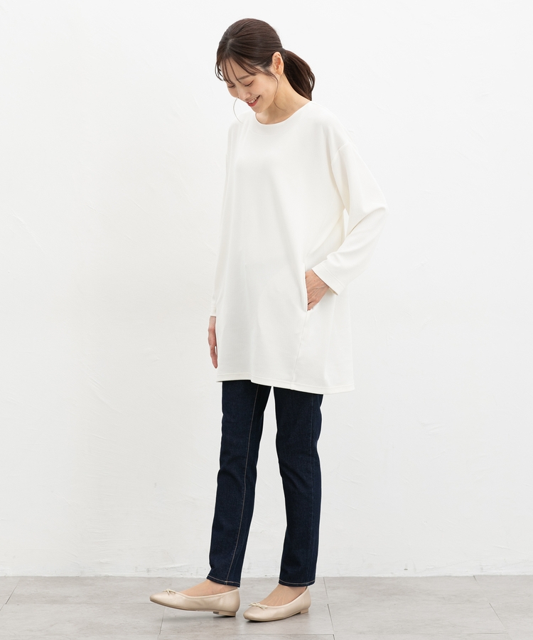 ヒップまですっぽり隠れる丈感とゆったり幅で気になる体型もカバー。