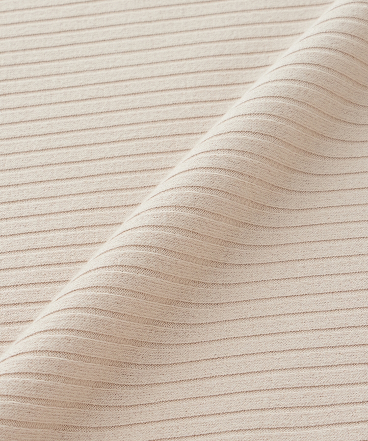 環境に優しい再生ポリエステルを使用した、ストレッチが利いて着心地抜群のレーヨン混テレコ素材。