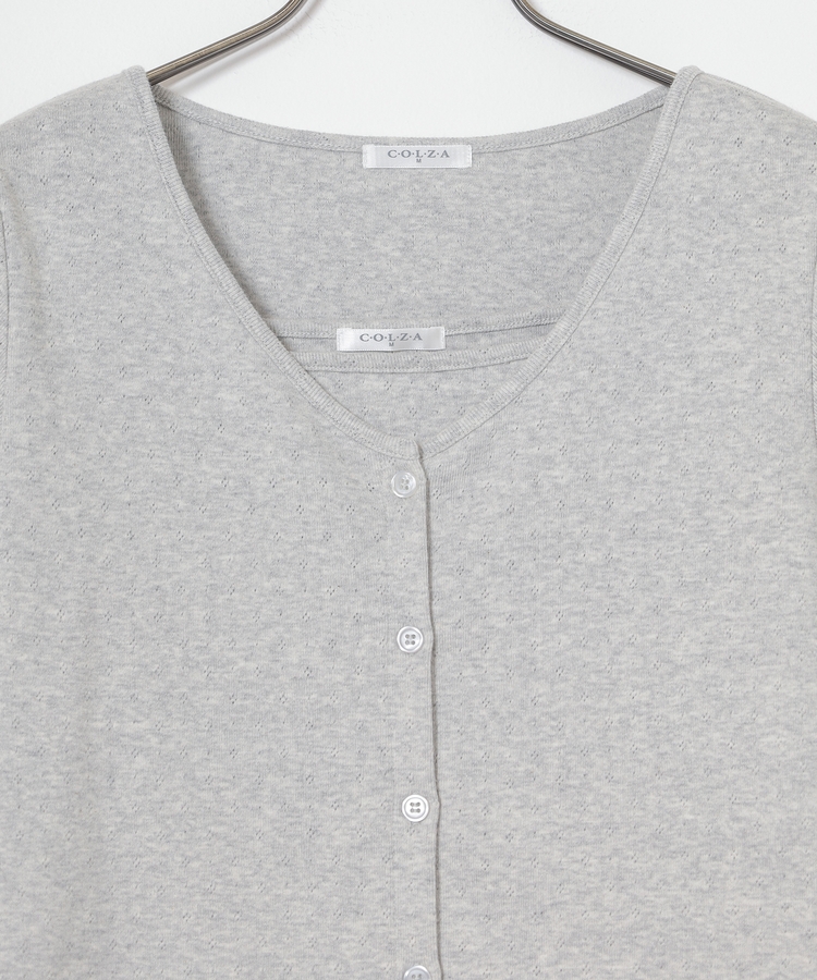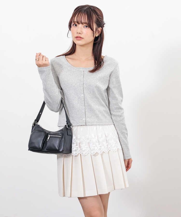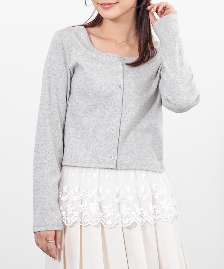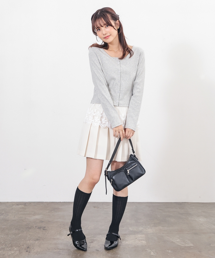 カーディガンは首元がすっきり見えるVネック。