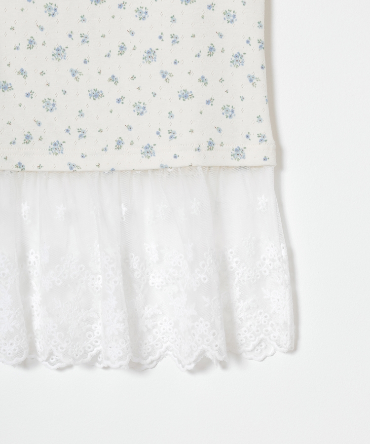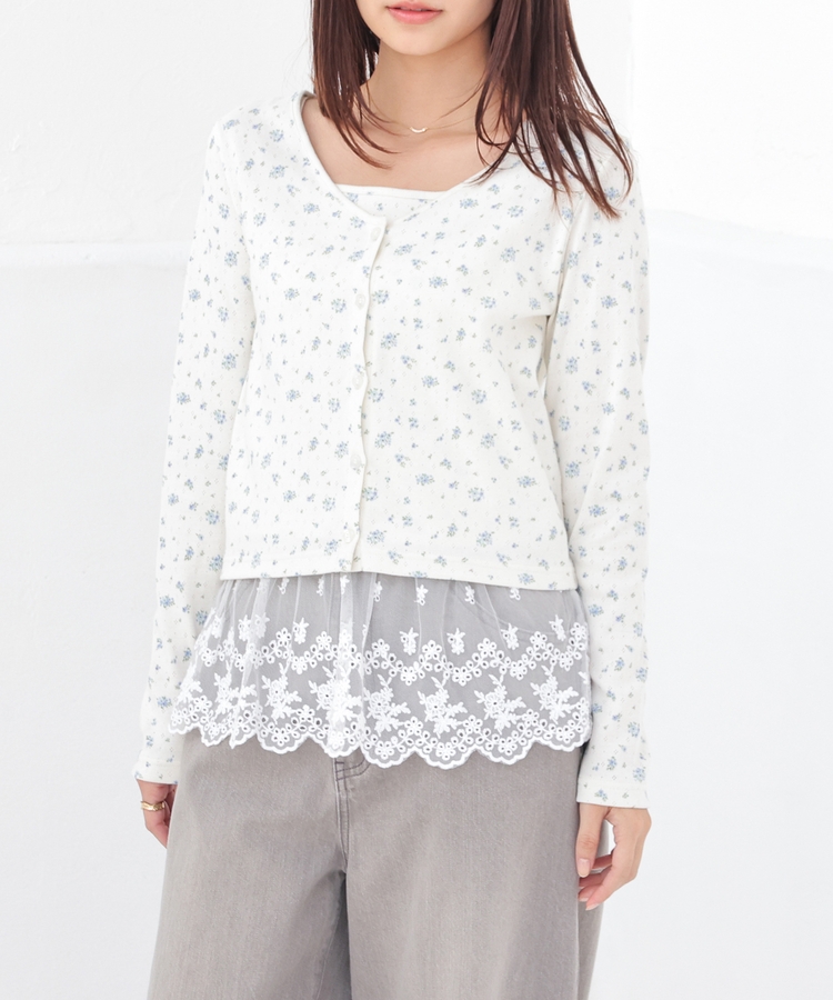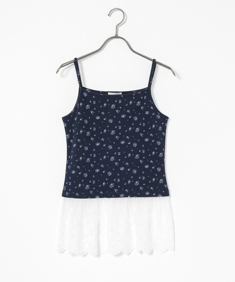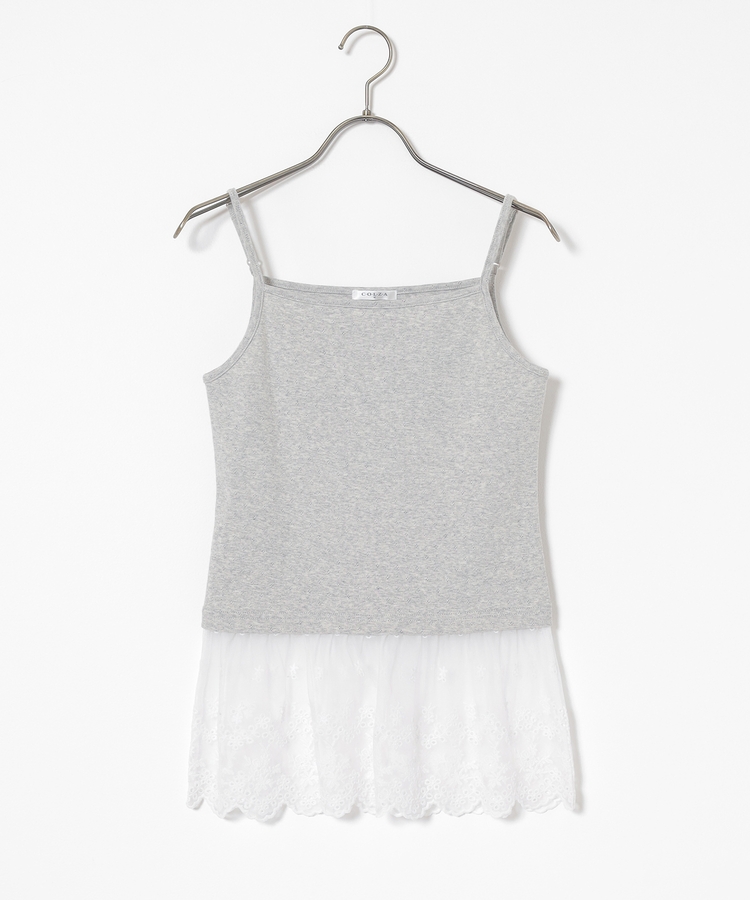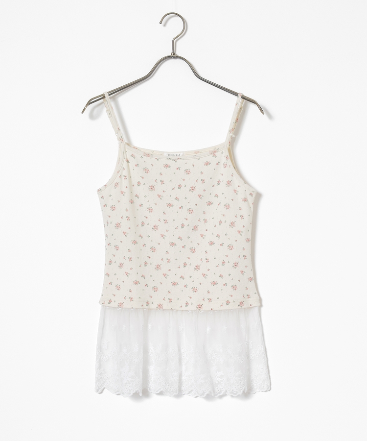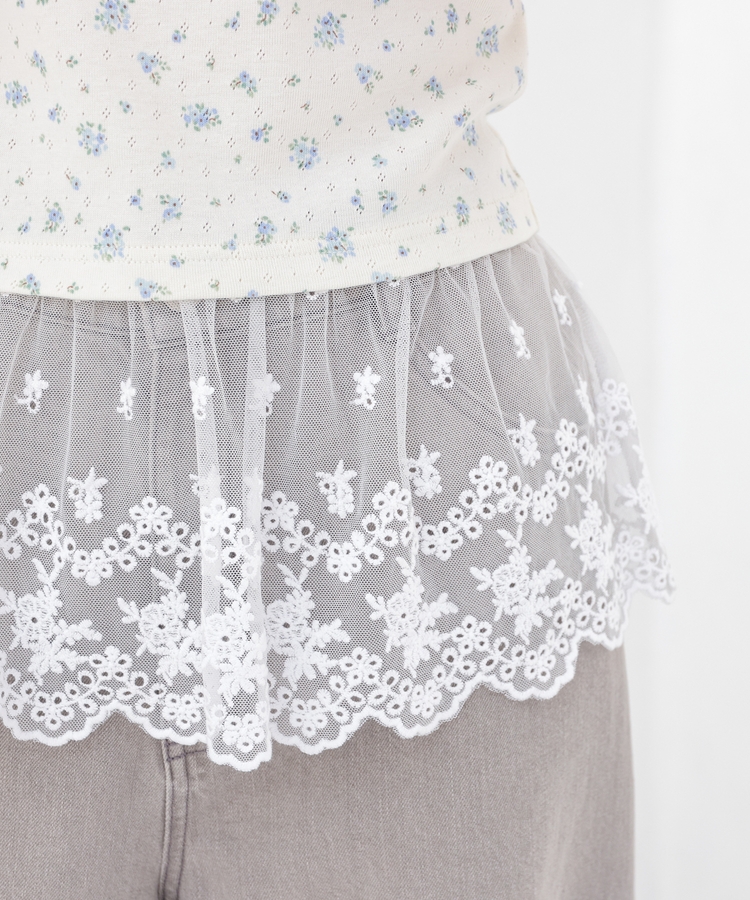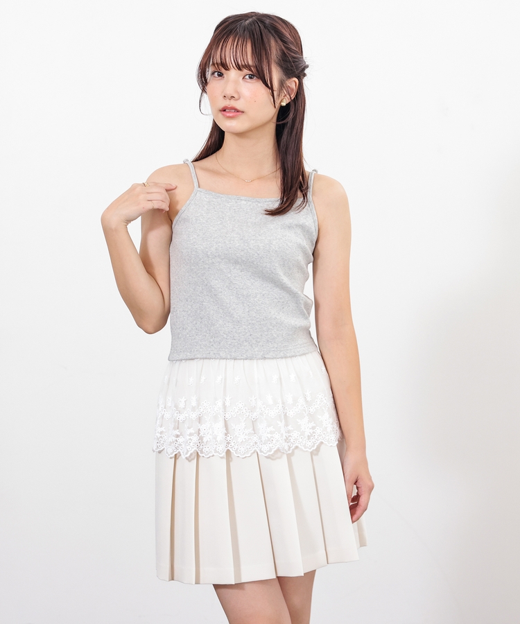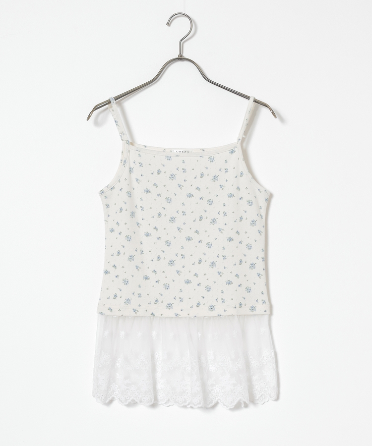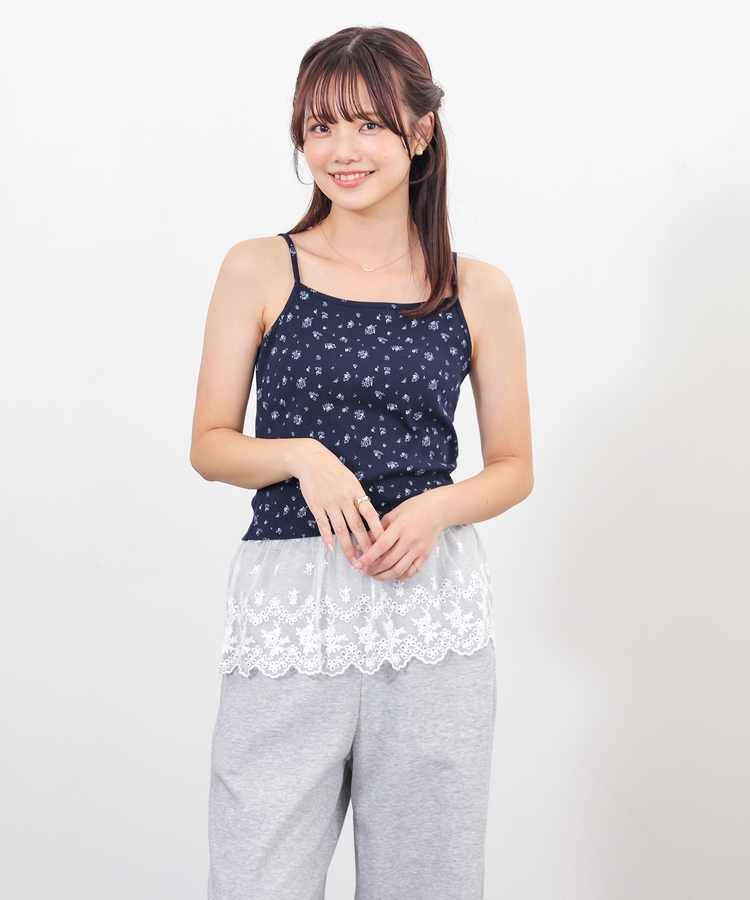 同素材のキャミソールはフェミニンなレースの裾フリル付き。