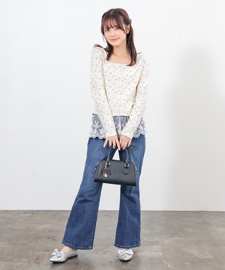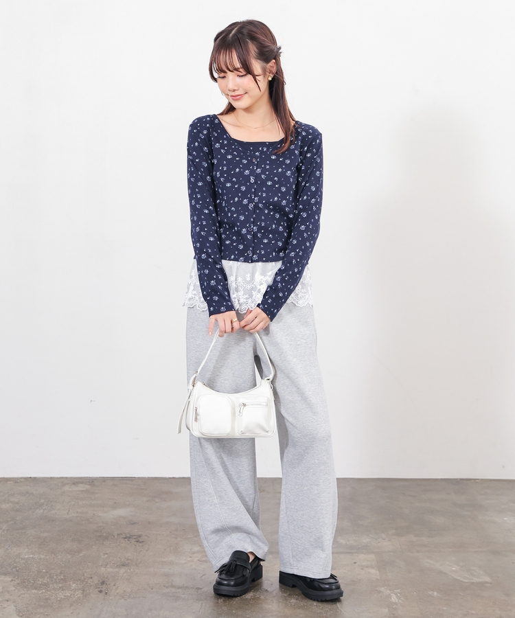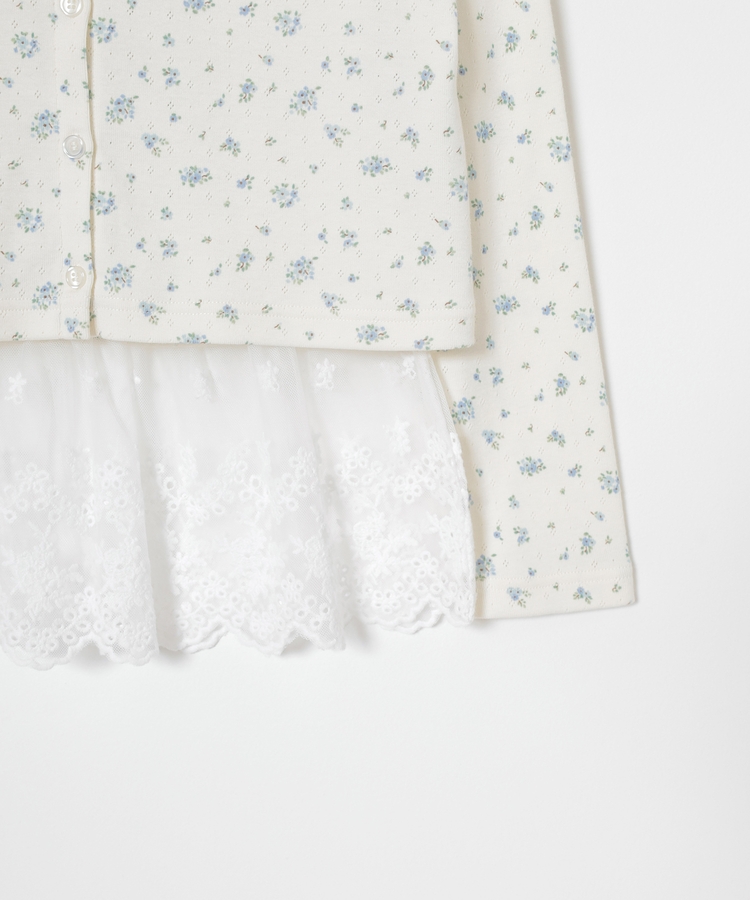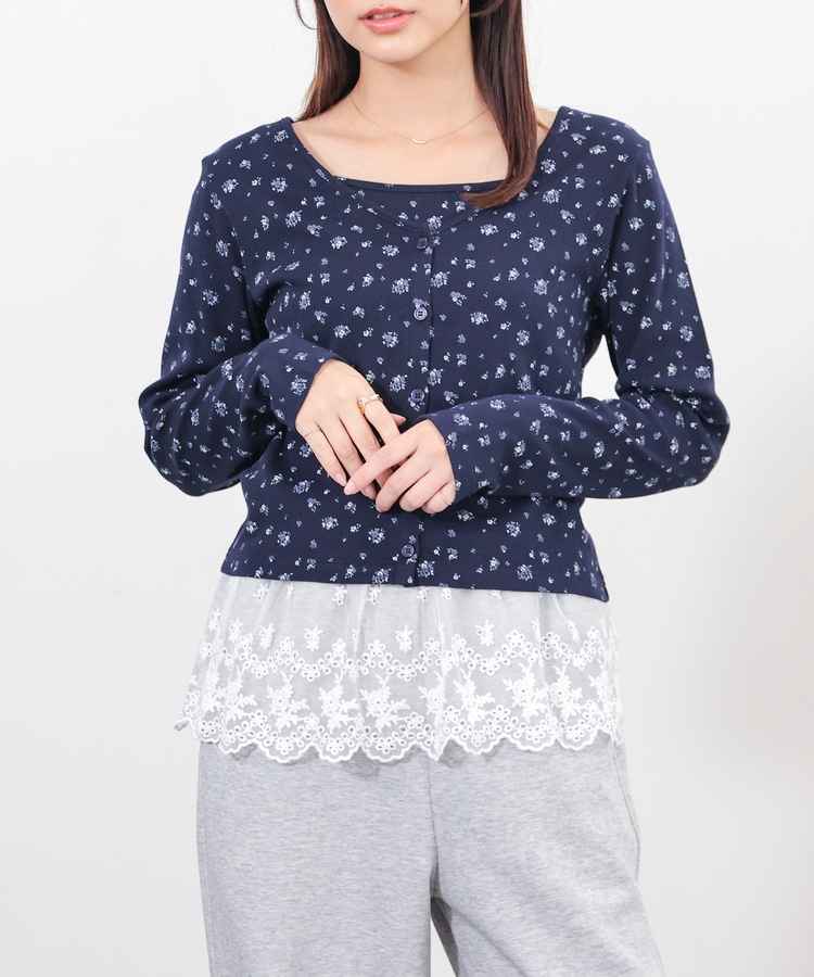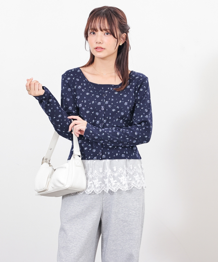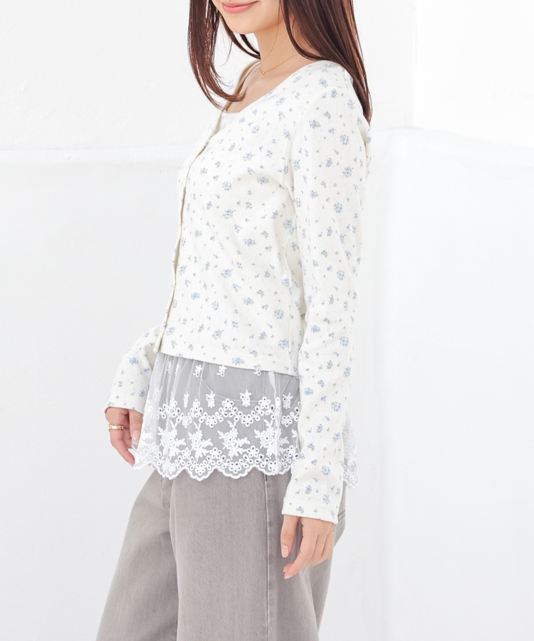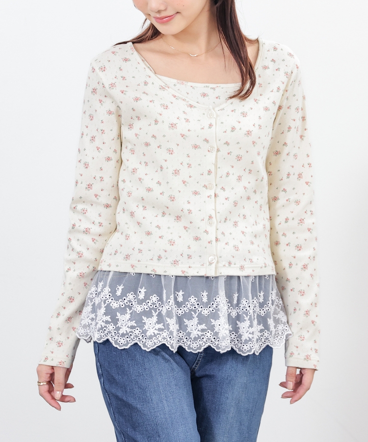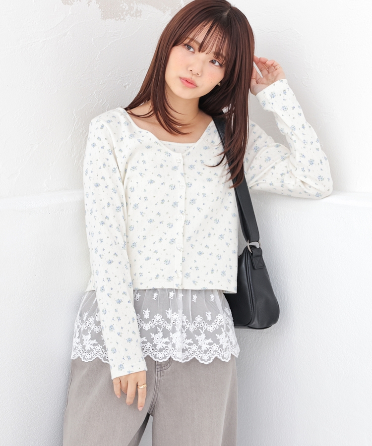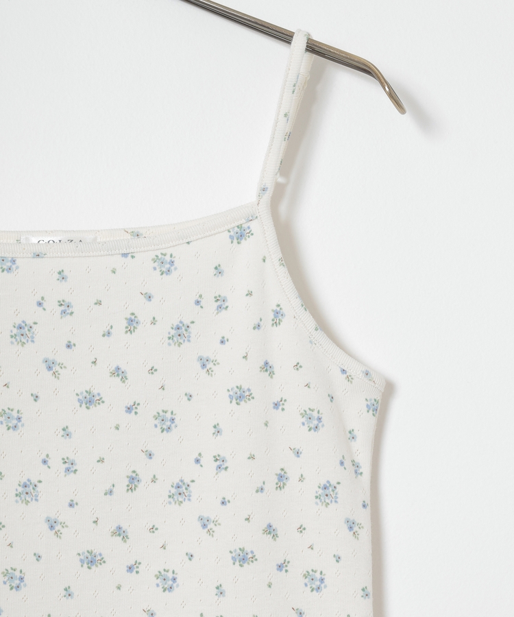 同素材のキャミソールはフェミニンなレースの裾フリル付き。