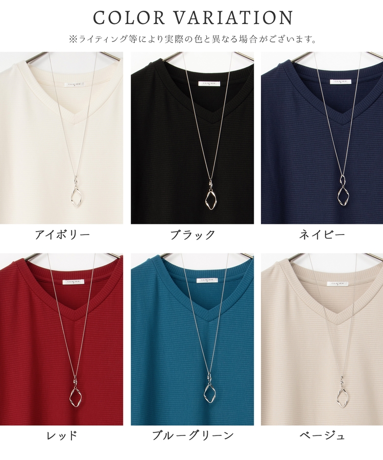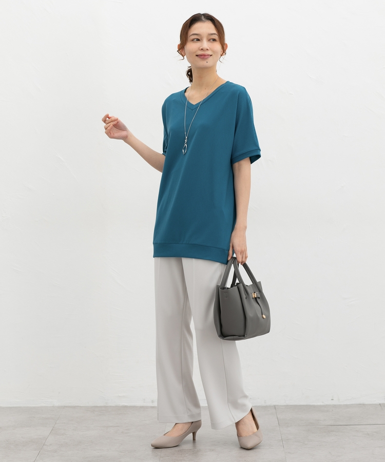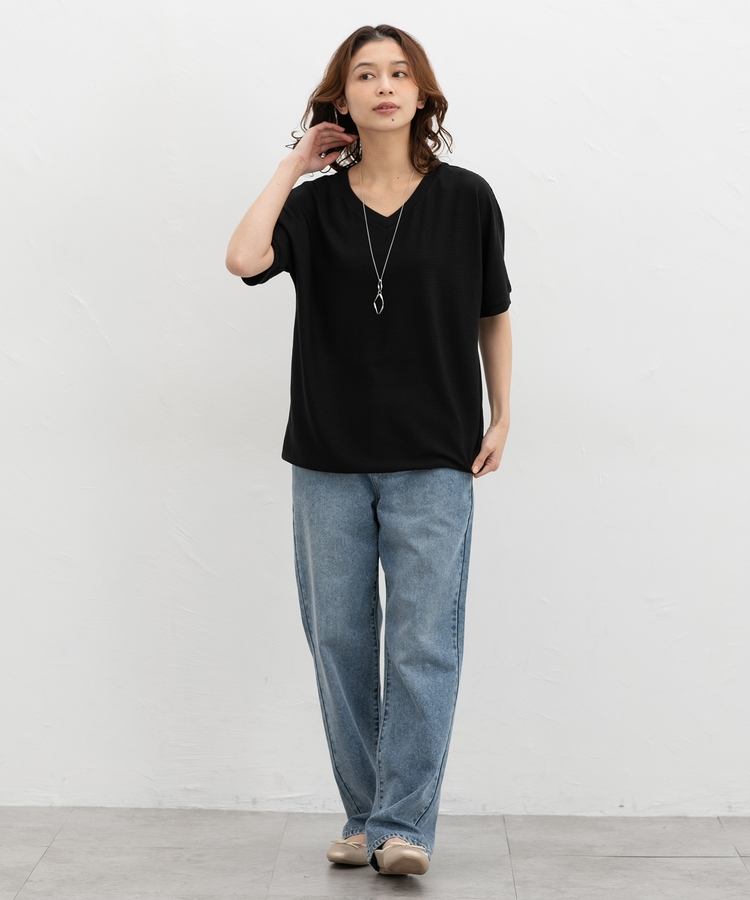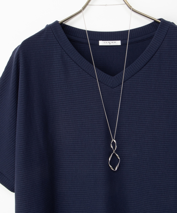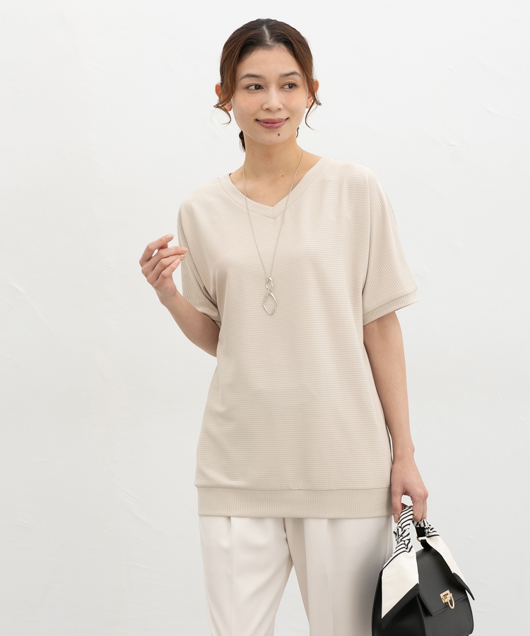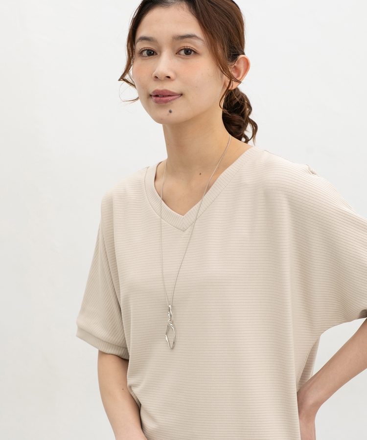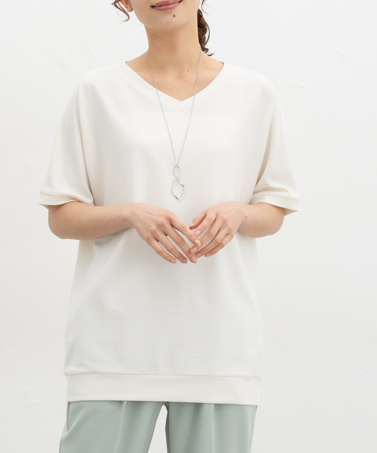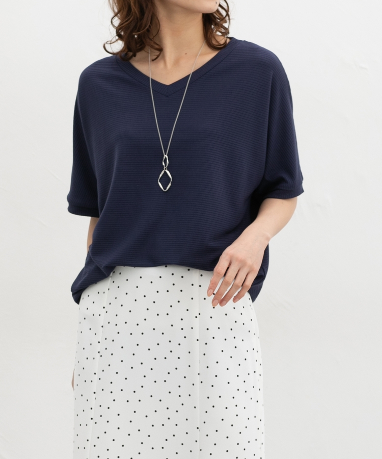 デコルテが美しく見えるVネック×ルーズなドルマンスリーブの、さらっと1枚でサマになる大人のこなれデザイン。