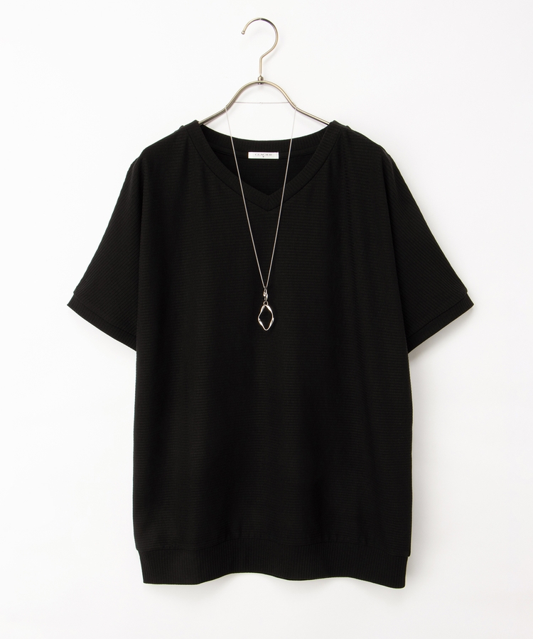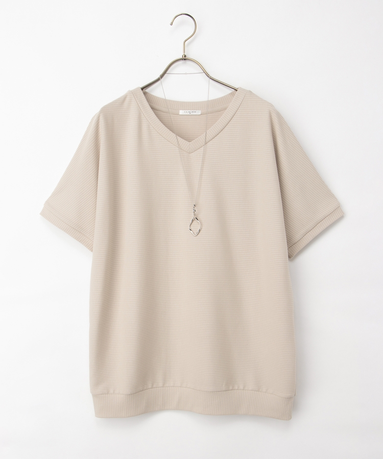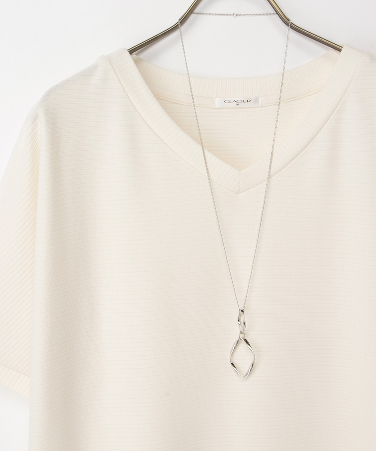 シンプルコーデに映えるアクセサリー付き。